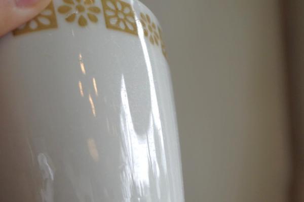 全体的に小傷があります(写真)。飲み口にも小傷がありますが(写真)ご使用に差し支えるようなチップやヒビなどはありません。
