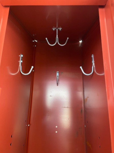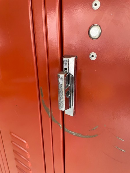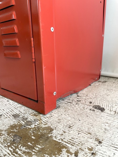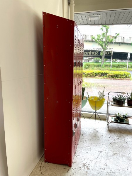 目を引く赤いペイントが印象的なロッカー。トップが斜めになっているのも上部に物を乗せられないように阻止した形になっていたり、アメリカンな雰囲気・存在感も抜群です。