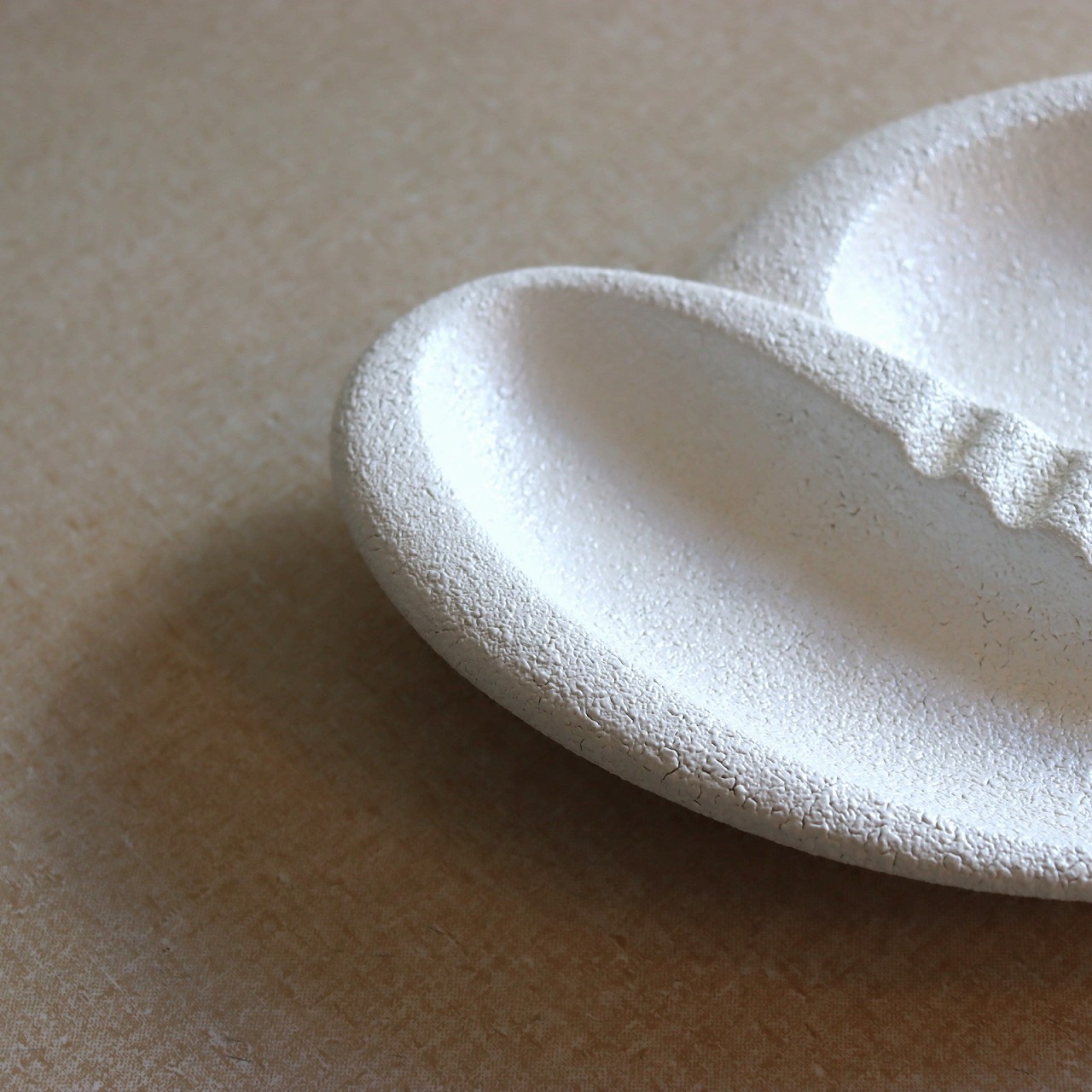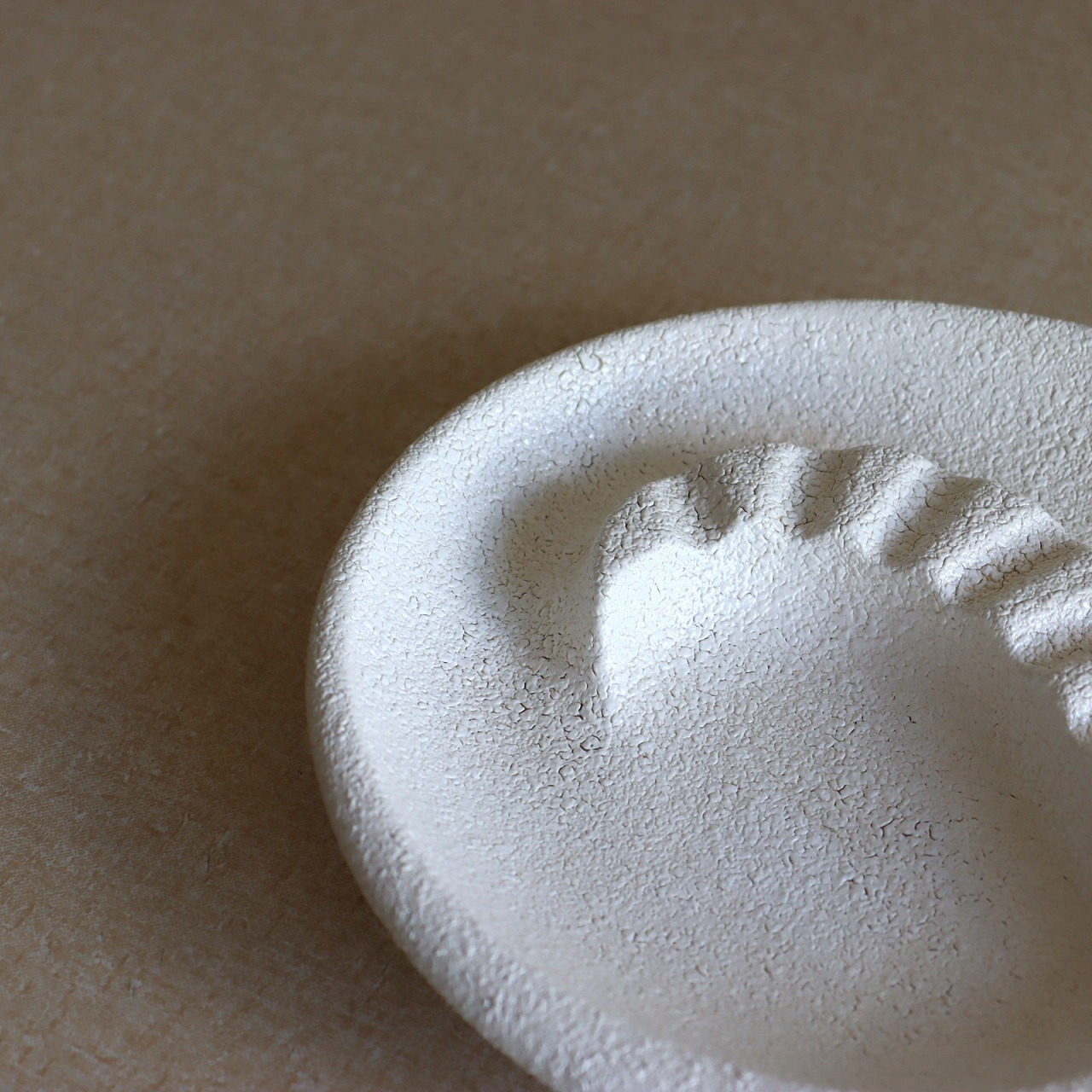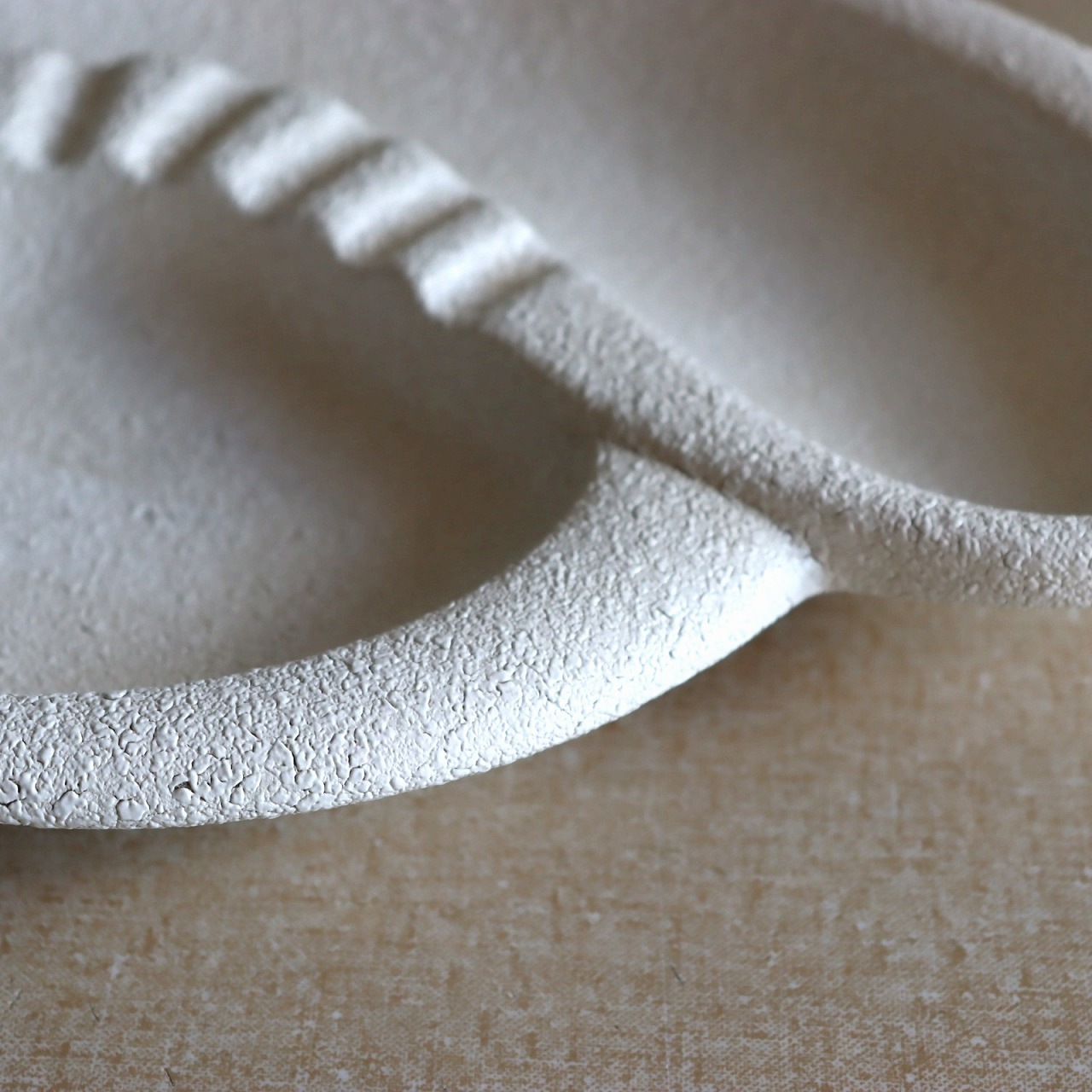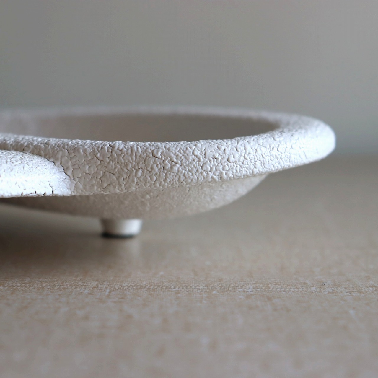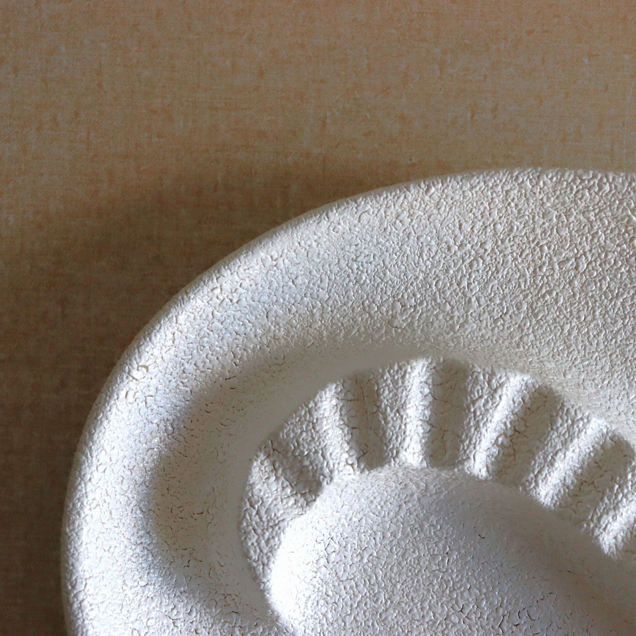 白いアイテムは陰影でおうとつを感じるため、横からの光りが当たると立体的に見えます。ざらざらの表面にできる陰影が白一色の中にニュアンスをうんでいます。