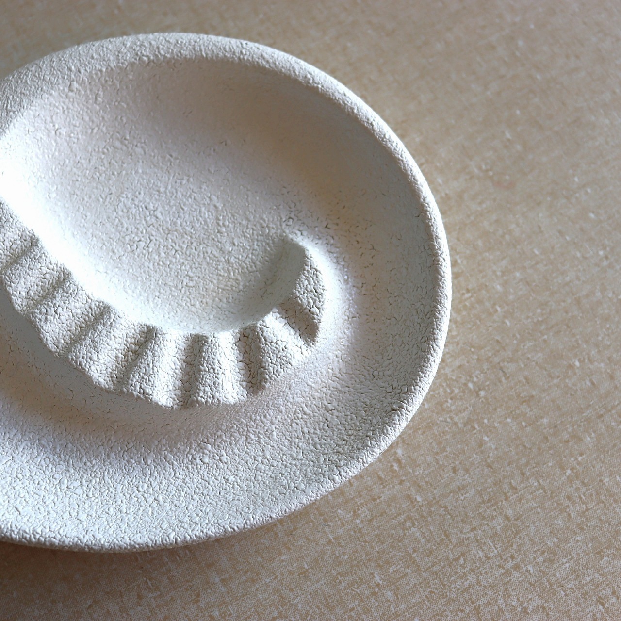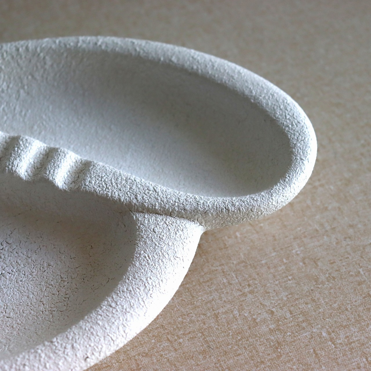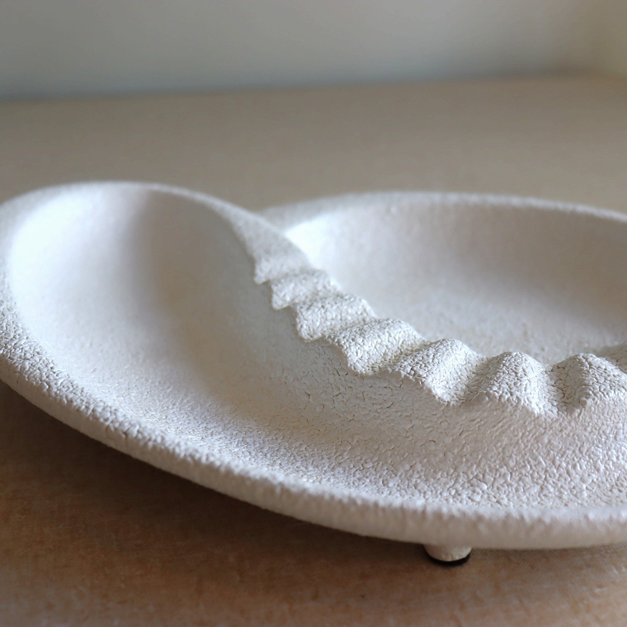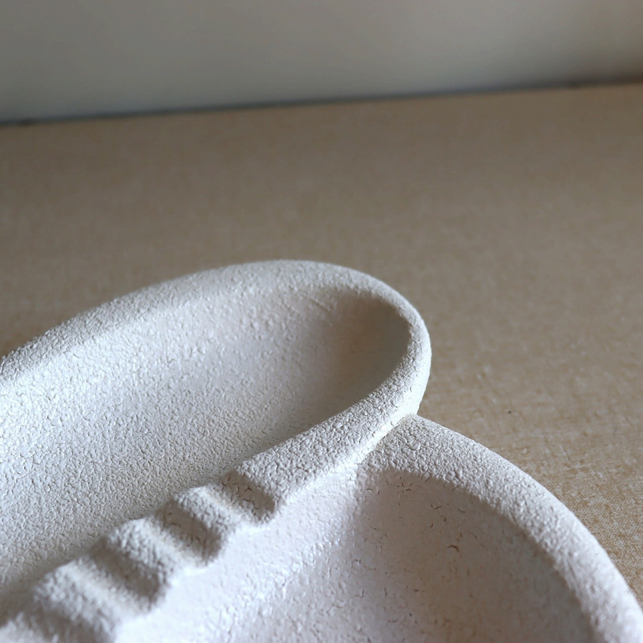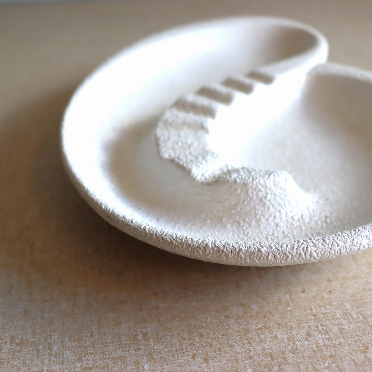 白いアイテムは陰影でおうとつを感じるため、横からの光りが当たると立体的に見えます。ざらざらの表面にできる陰影が白一色の中にニュアンスをうんでいます。