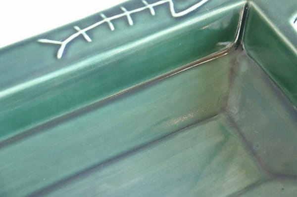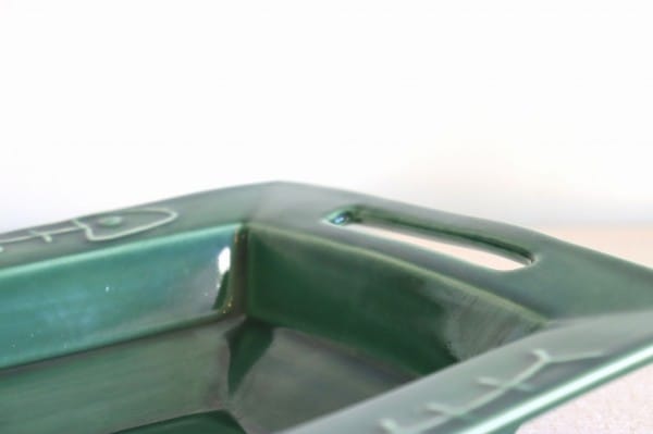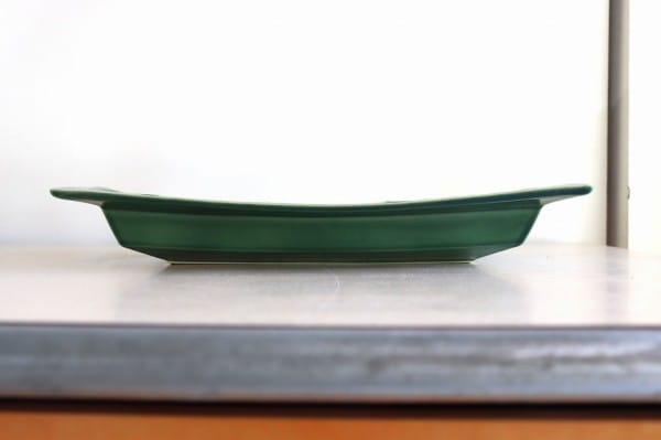 深みのあるグリーンと魚モチーフの絵柄がインパクトがありますね。また、トレーの外形はゆらゆらとしたラインになっており、大ぶりなトレーながら遊び心のある可愛い印象も受けます。