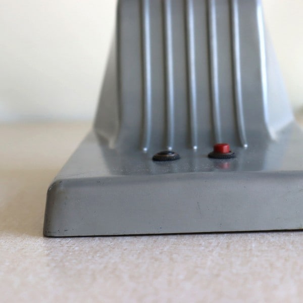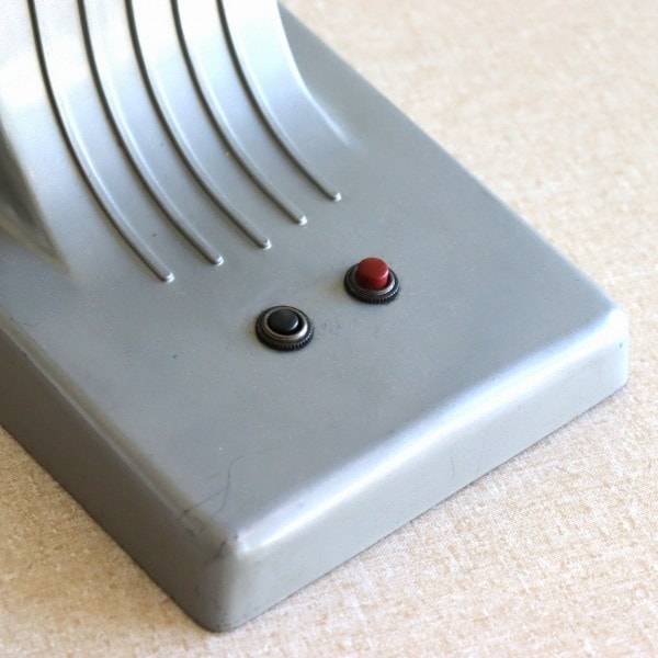 点灯は赤いボタンを長押し。黒いボタンで消灯です。小さな押ボタンがふたつ並んでいるのもレトロでかわいいですね。