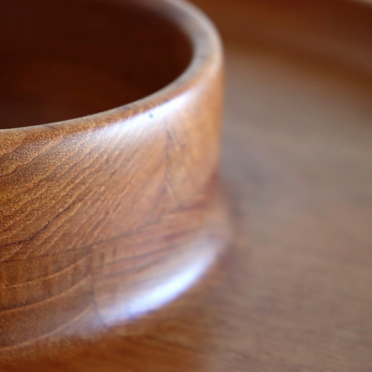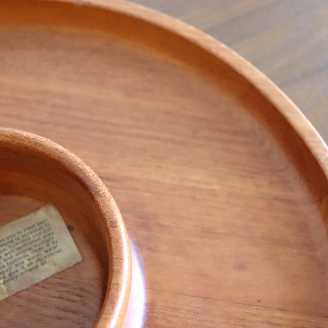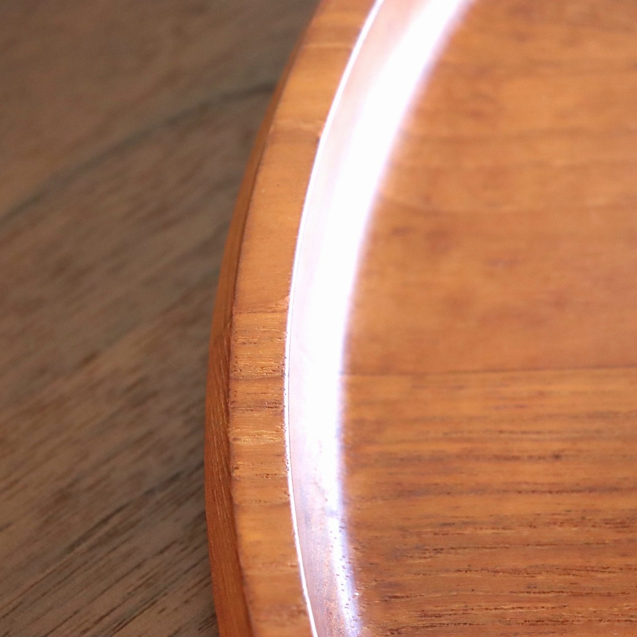 JHQクインストゴーデザインの美しいチーク材を削りだしてつくられたトレー。滑らかな曲線と肌触りがとても素敵です。