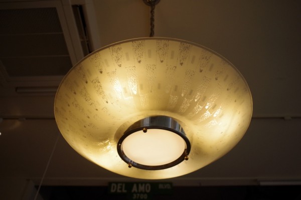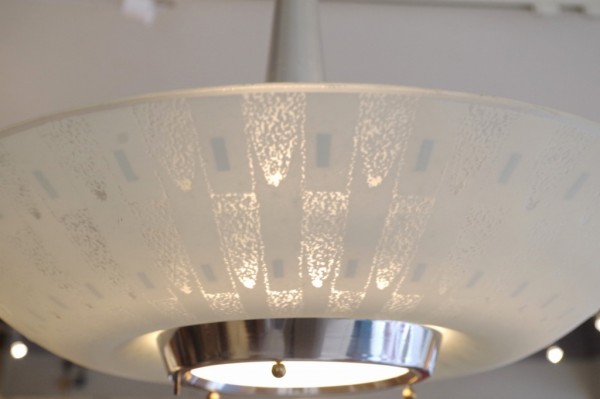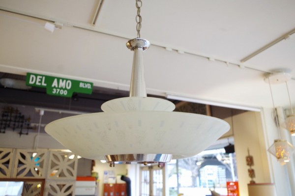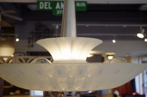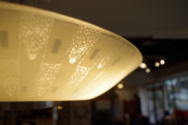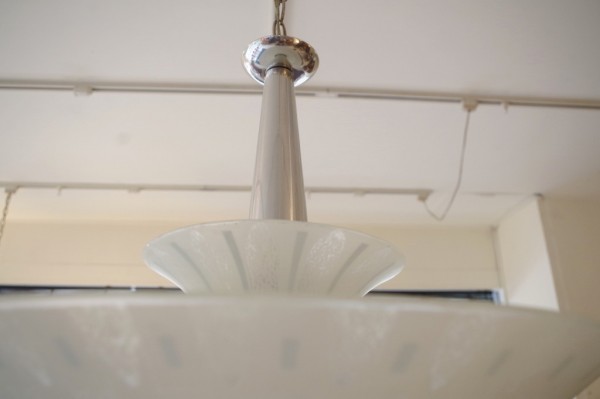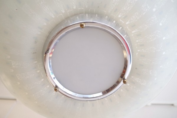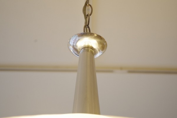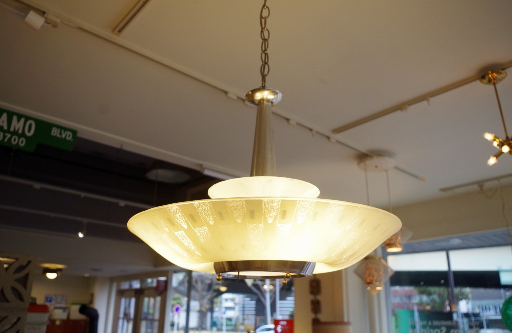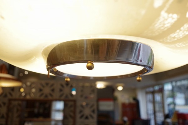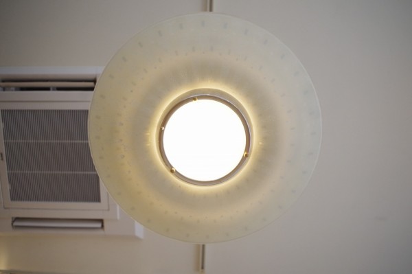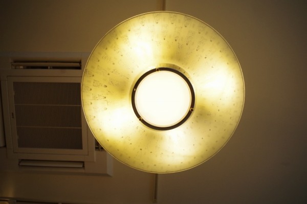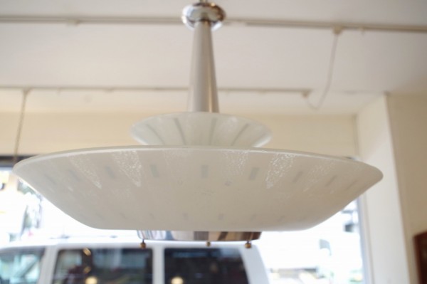 ガラスペンダントランプ。ガラスのお皿をランプにしたような形状のランプです。