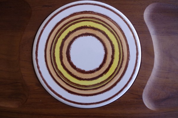 タイルは白地に同心円のサーモンピンクとイエローの模様が描かれ、かわいらしい佇まい。チークとのコントラストも綺麗です。