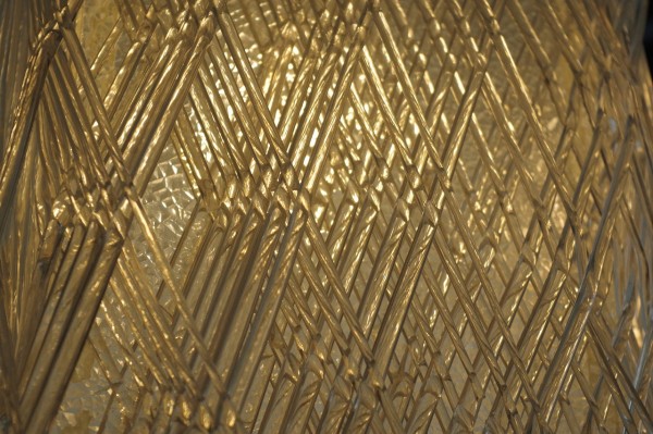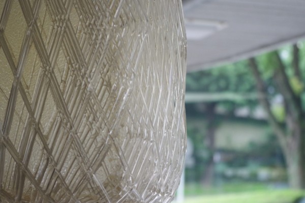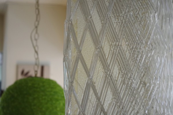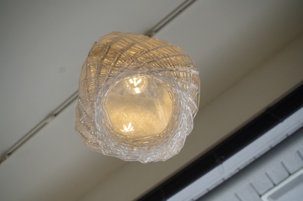 規則正しく、重なるごとに少しずつずらして巻かれている樹脂は立体感や奥行きを感じさせ、隙間から見える板もアクセントになっていますね。
