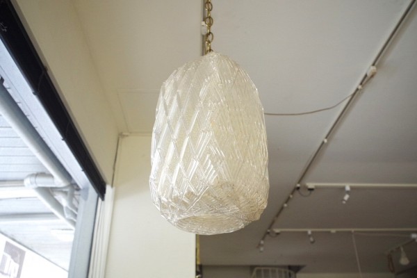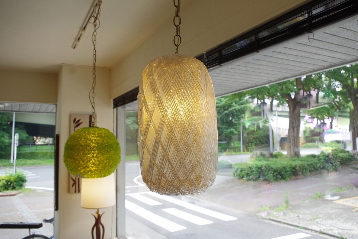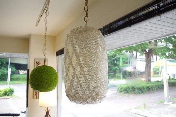 クリアスパゲティランプ。名前の通り、スパゲティ状のアクリル樹脂を巻き付けてシェードを形成したランプで、ミッドセンチュリーにはバリエーション豊かなスパゲティランプが作られました。
