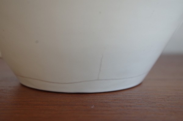 口のチップと底のヒビがありますので、実用ではなくディスプレイなどにおすすめ。コーディネート次第でかっこよくもシャビーな雰囲気にもなります。