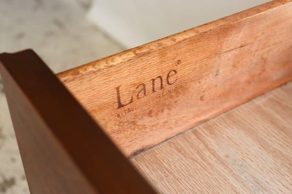 レーン社製カップボード。アクレイムシリーズはダブテイル(鳩の尾)模様が特徴のシリーズ家具です。
