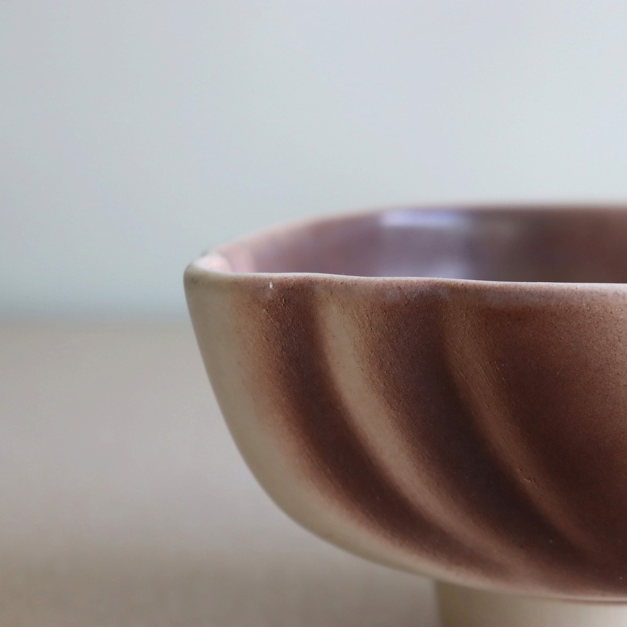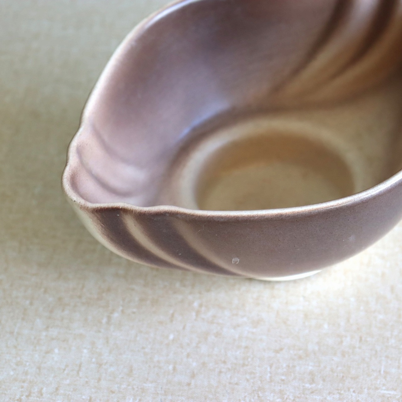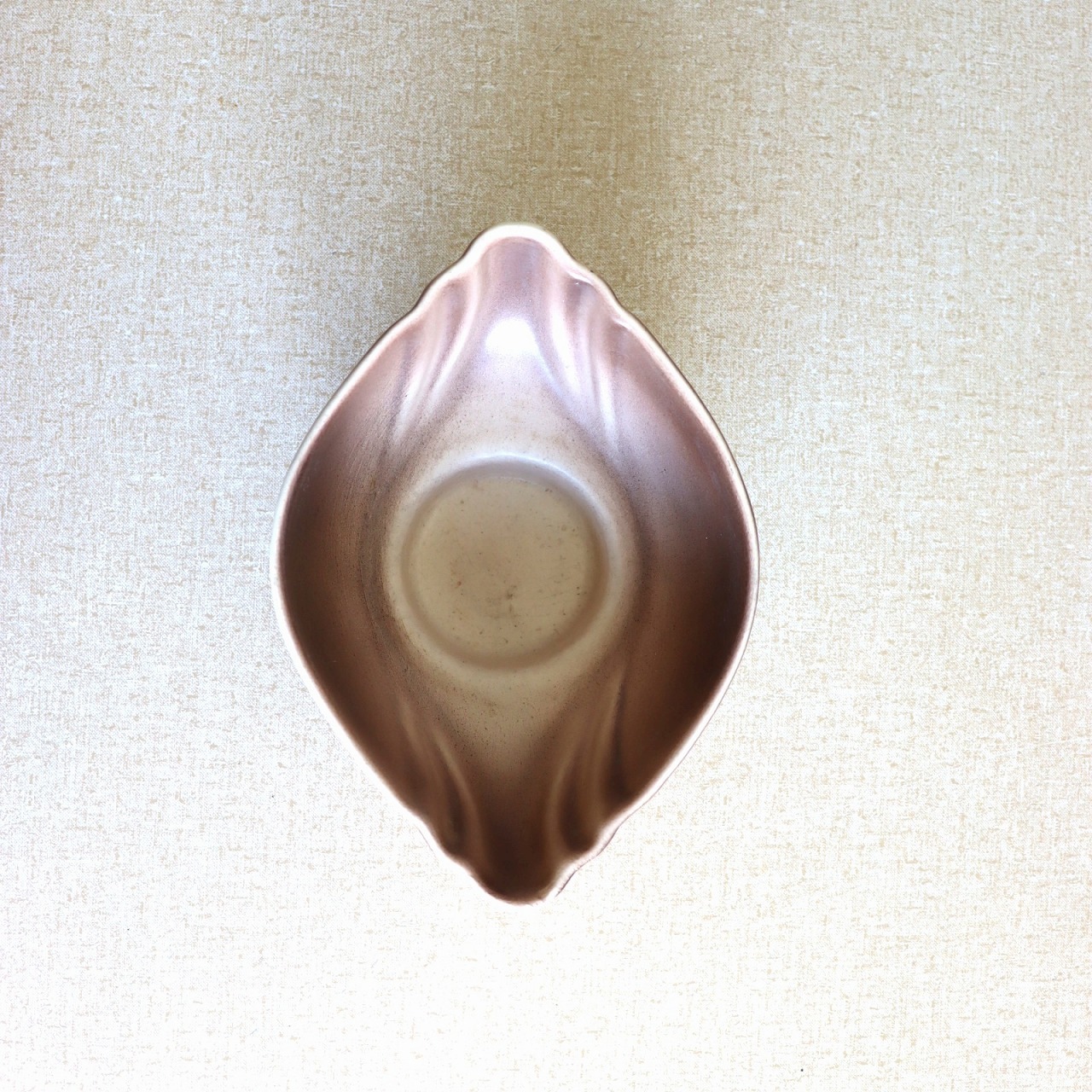 台座が付いた小ぶりのサイズ感が可愛いアイテム。貝殻のような楕円形で左右にはなめらかなラインで凹凸があります。