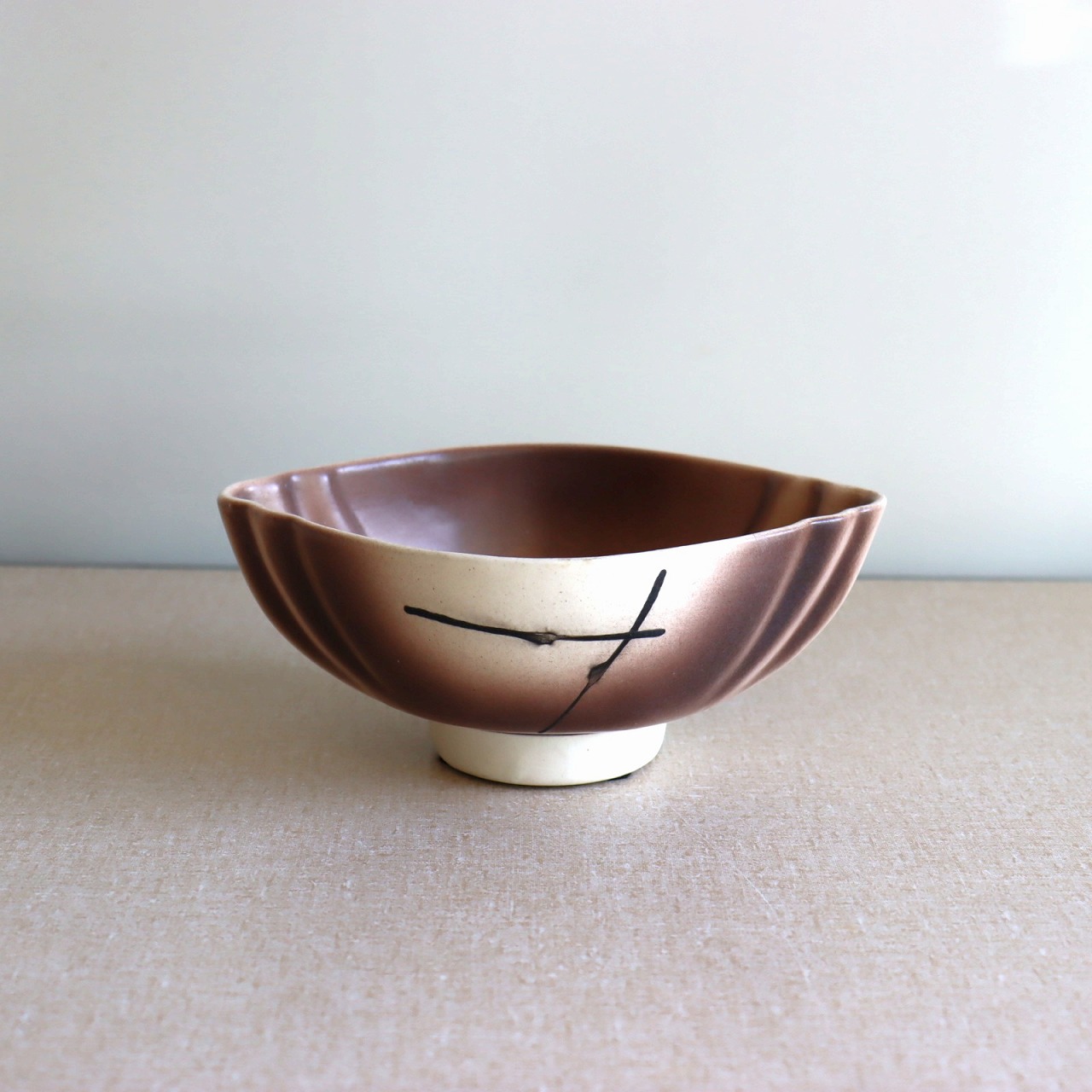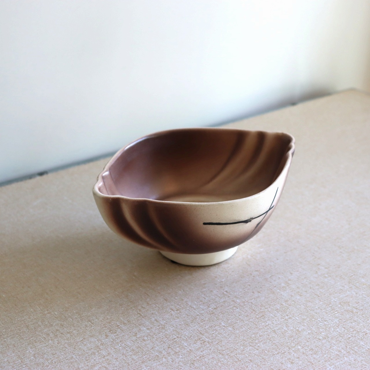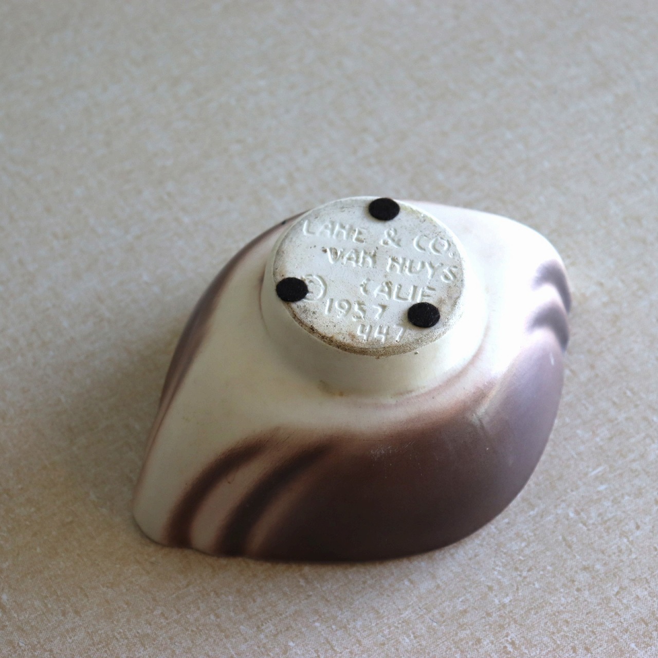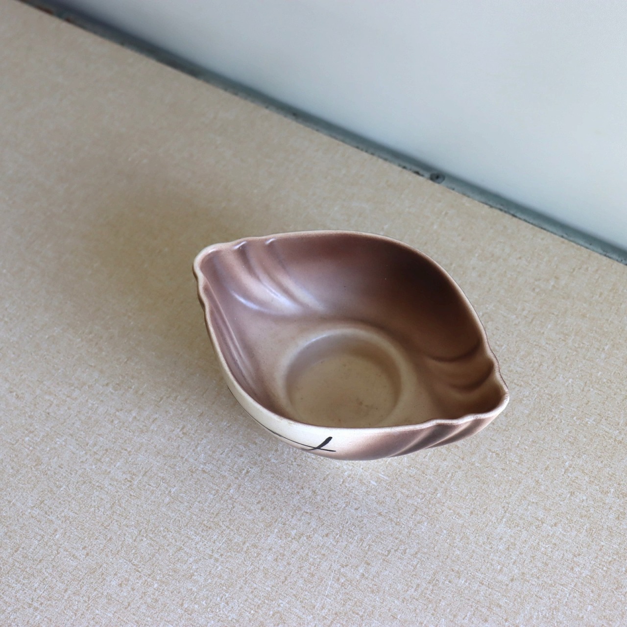 台座が付いた小ぶりのサイズ感が可愛いアイテム。貝殻のような楕円形で左右にはなめらかなラインで凹凸があります。