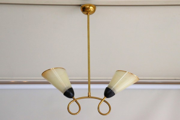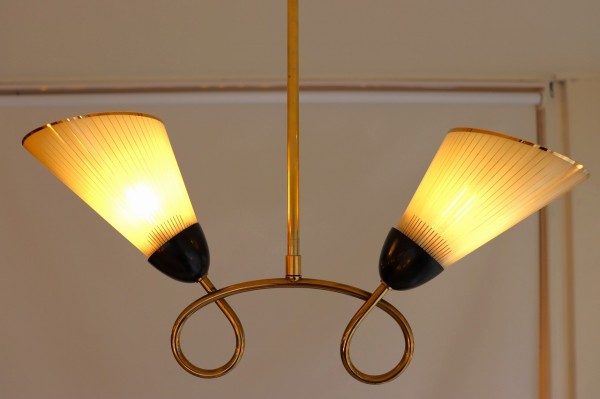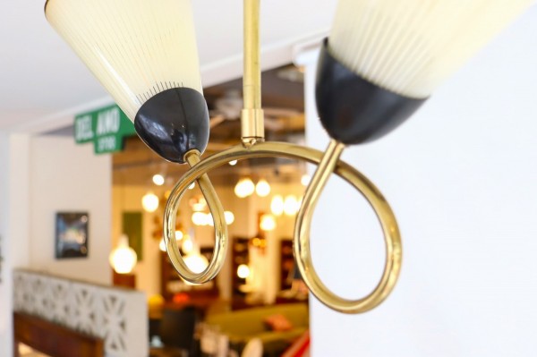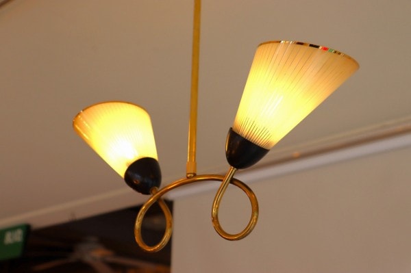 2灯ペンダントランプ。カールしたアームが目を引くペンダントランプです。