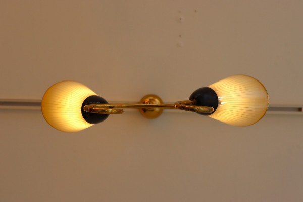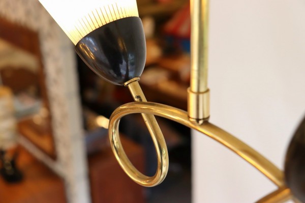 真鍮のアームは左右それぞれカールしています。シェードの雰囲気と相まって、上品な佇まいです。真鍮の独特な輝きが抜群でヴィンテージ感をたっぷりと楽しめます。
