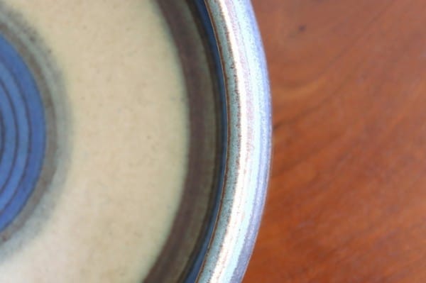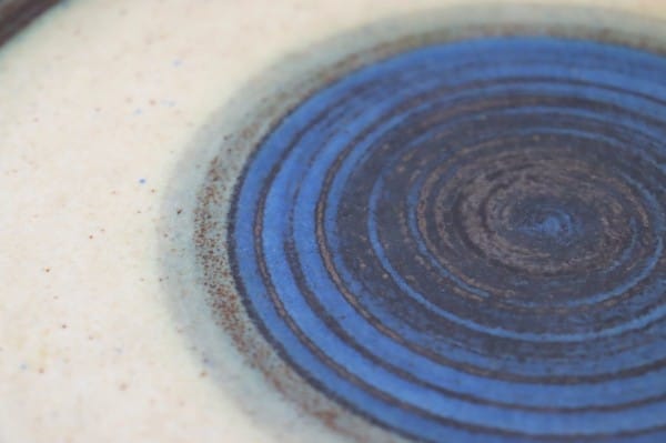中心から円が広がっていくような美しい模様がすてきです。深みのあるブルーが渋く、ベージュや薄い緑色との相性が良く素敵です。