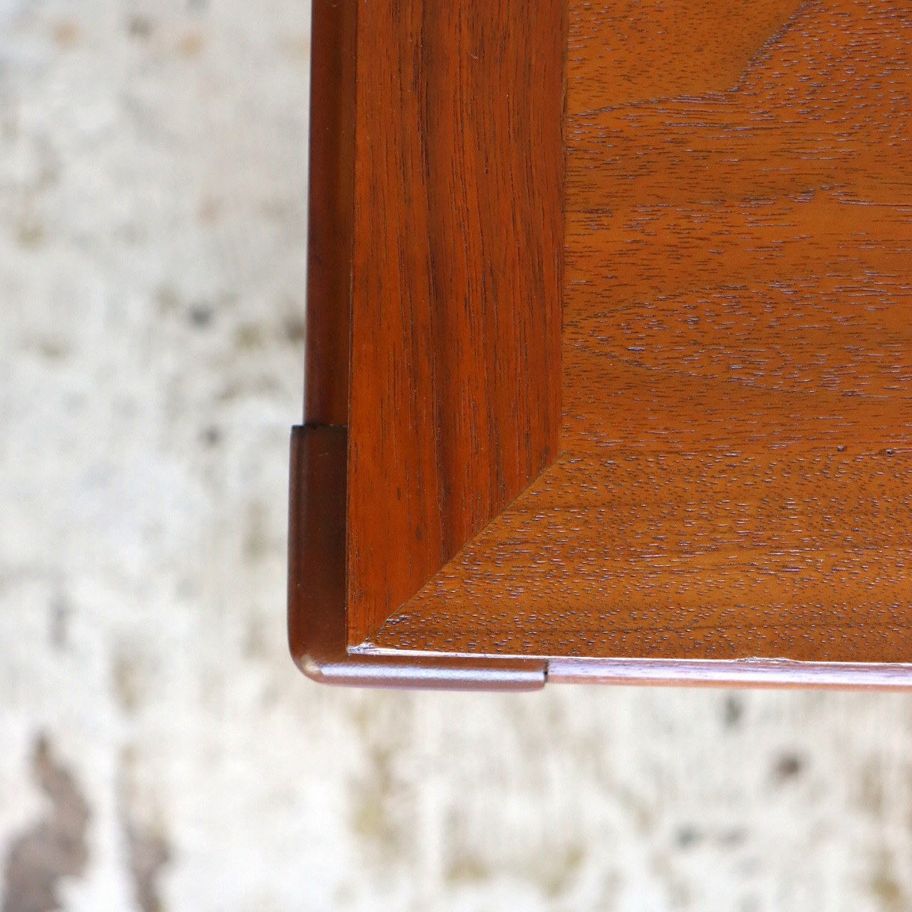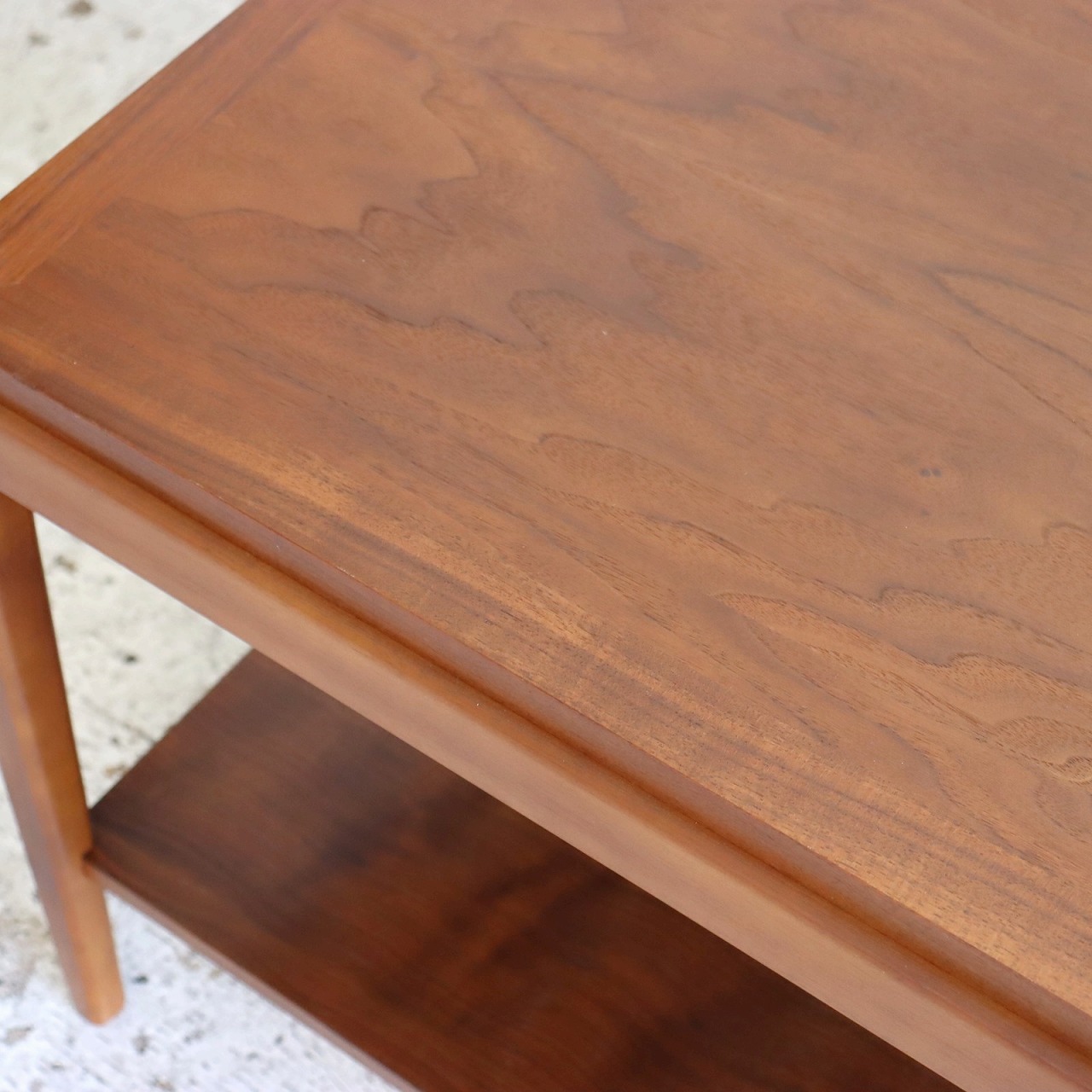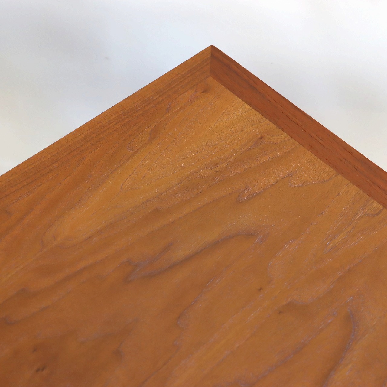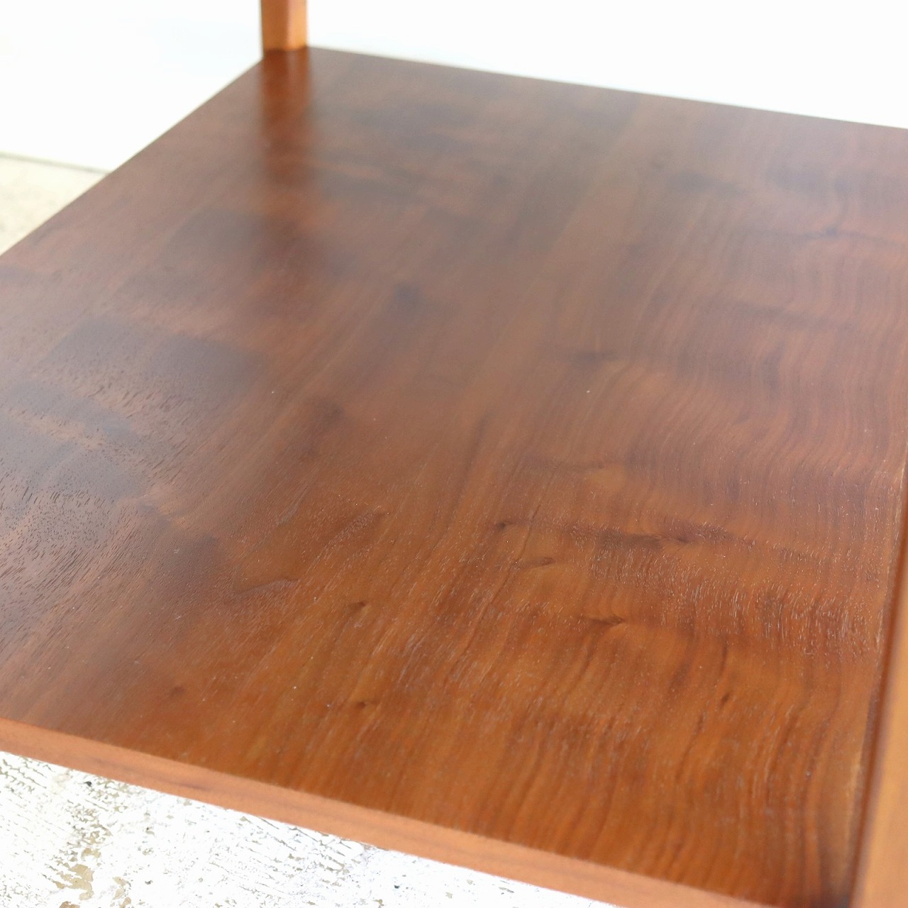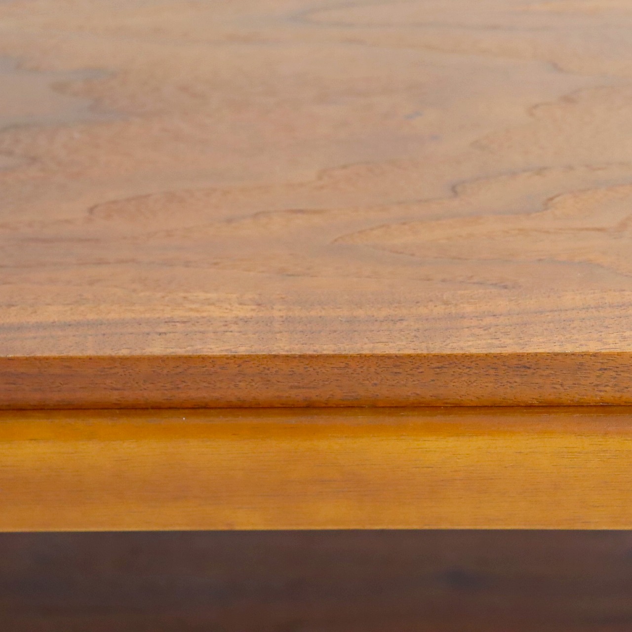 少し大きめな天板はウォールナットの木目がしっかり感じられ、アメリカンヴィンテージらしさが楽しめる雰囲気。ウォールナットらしい白太の個性を活かすのもアメリカ流です。