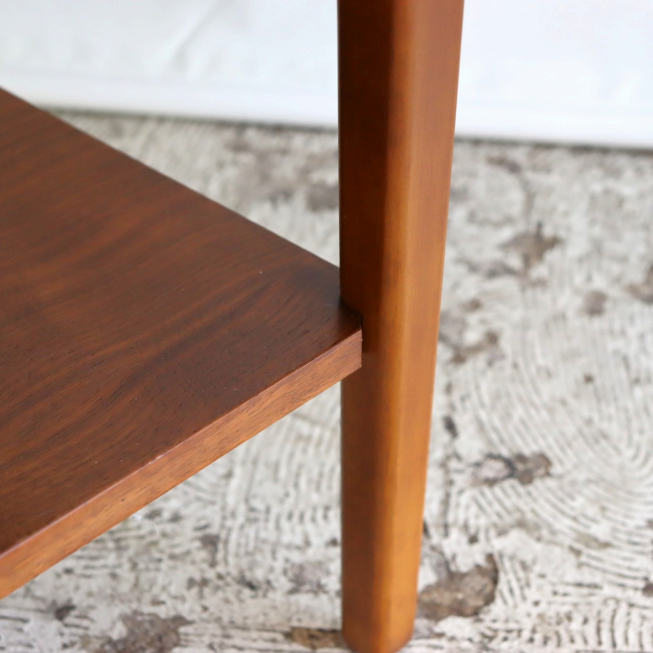 素材はウォールナット突板で、細かいキズはありますが、目立つような大きなダメージはありません。棚板裏に製造年月日を記す刻印もあります。1968年11月15日製造です。