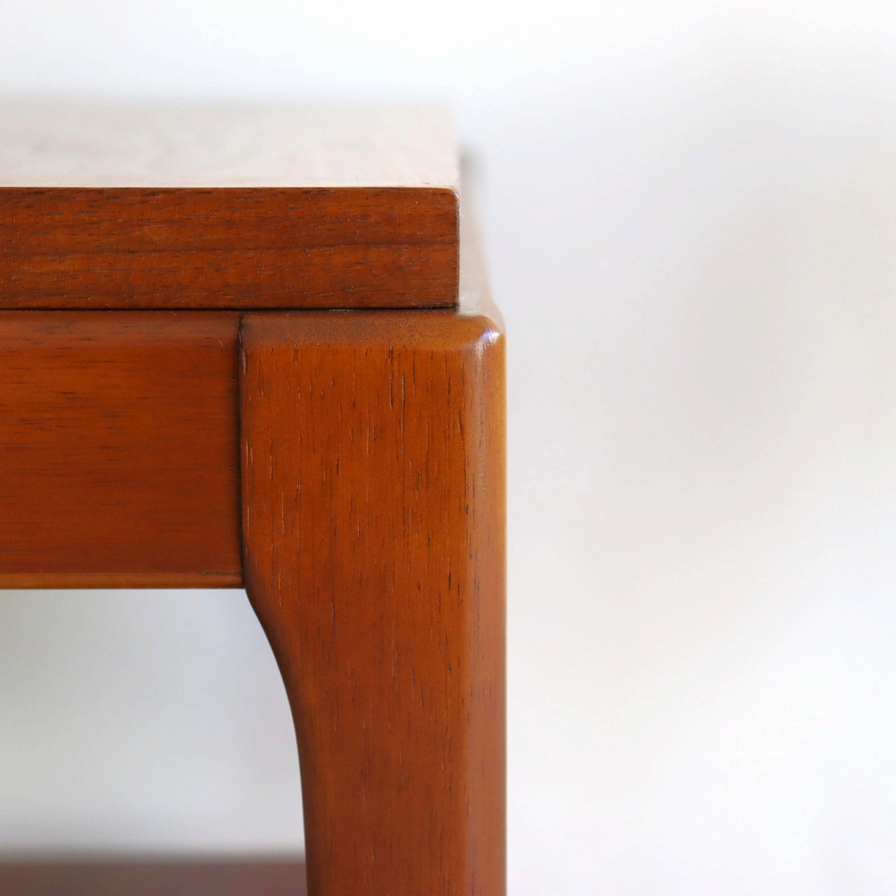 天板はウレタン塗装で再塗装してあります。木の質感や木目を活かすよう必要十分な薄さにしておりますので、長時間の水気や蒸気にはご注意ください。