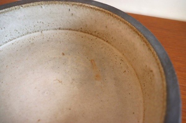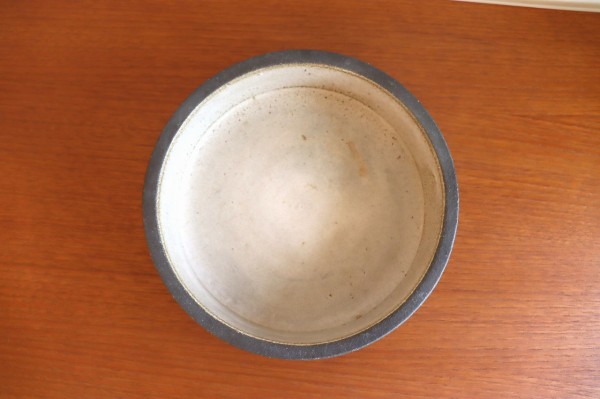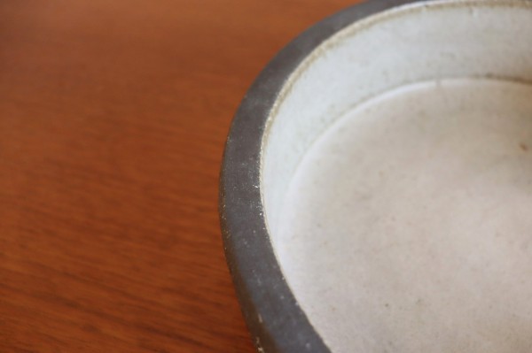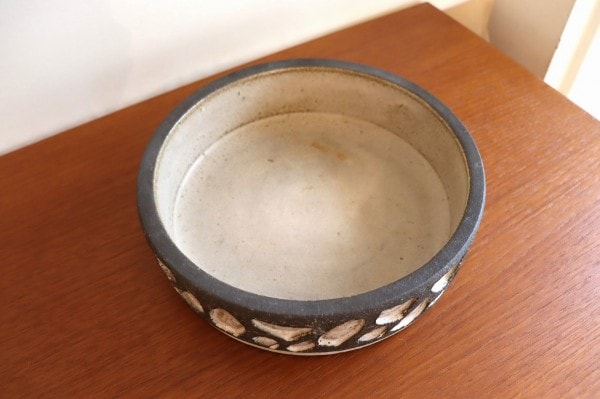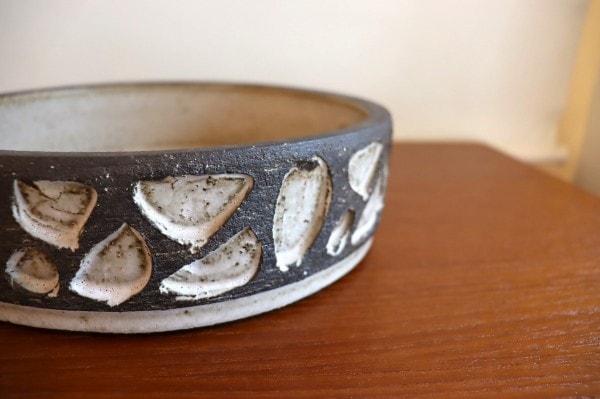 周りは自然の石をスタンプのようにして型取ったデザイン。ざらつきのある質感は土や粘土の質感を感じられ、内側はつるりとした程よいツヤ感があります。