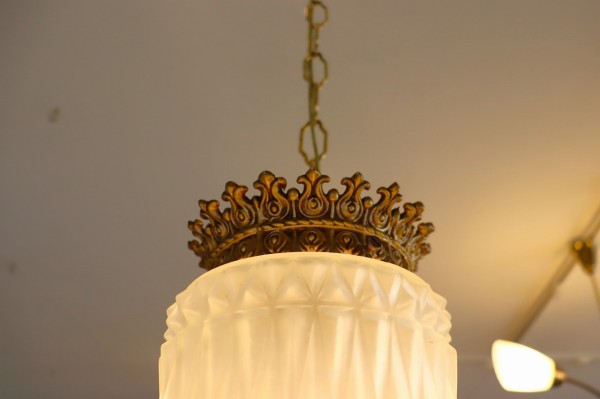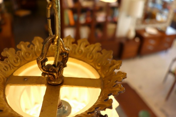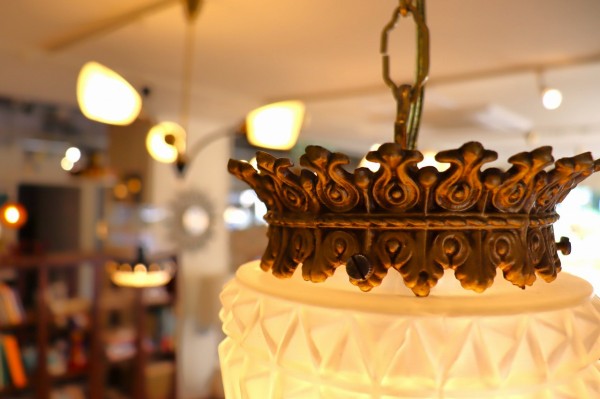 ランプの上下に付いている鋳物の飾りは、クラウンのようで上品で華やかな印象です。くすみがかったゴールドはギラギラな雰囲気になりすぎず、ヴィンテージ感もたっぷり感じられます。