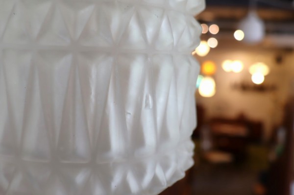 ガラスはフロスト加工されているので、電球の灯りが柔らかく、温かみのある空間を演出してくれます。