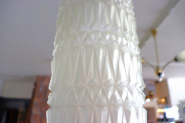 縦に伸びた円柱状のガラスシェードは大小三角形のカットが入っています。立体感のある表面は電球の灯りを際立たせて、陰影のあるグラデーションが楽しめます。