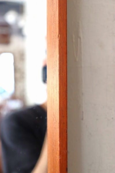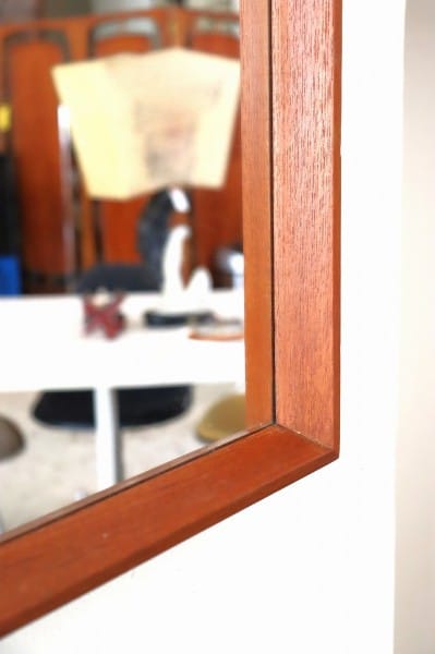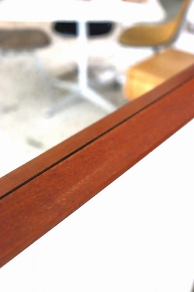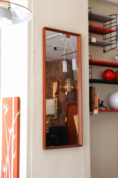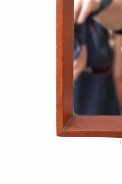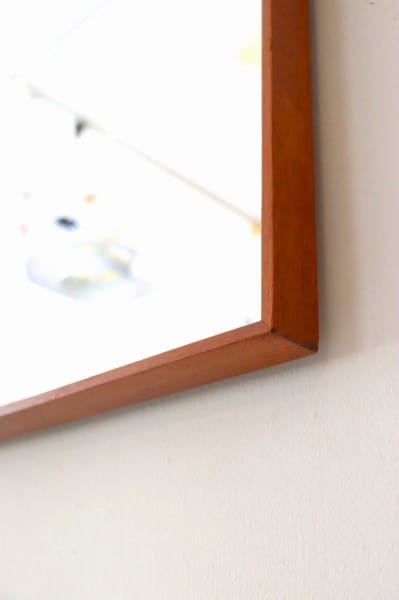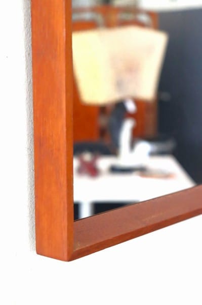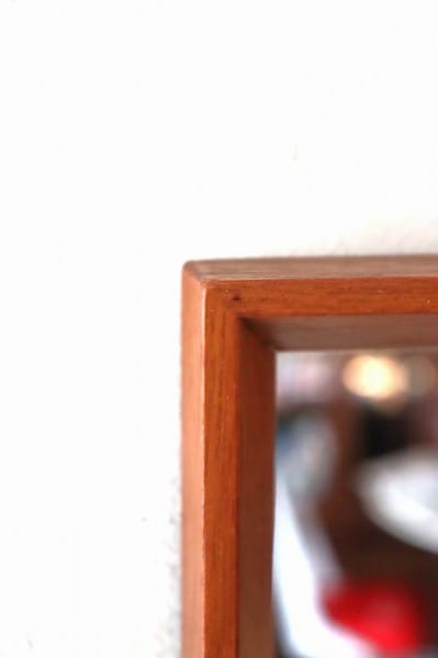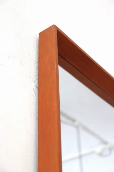 テーパードされたウッドフレームにミラーのシンプルなデザイン。フレームはチーク材。柔らかくあたたかな色合いと木目が、北欧家具らしく、木製家具や植物の他、無機質な素材のアイテムとの相性も抜群です。