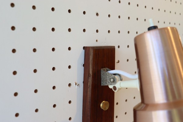 ウッドのベースから上下に稼働するアームが付いていて、その先にスポットランプが付いているつくりです。コンパクトにパーツがまとめられた無駄のないデザインです。