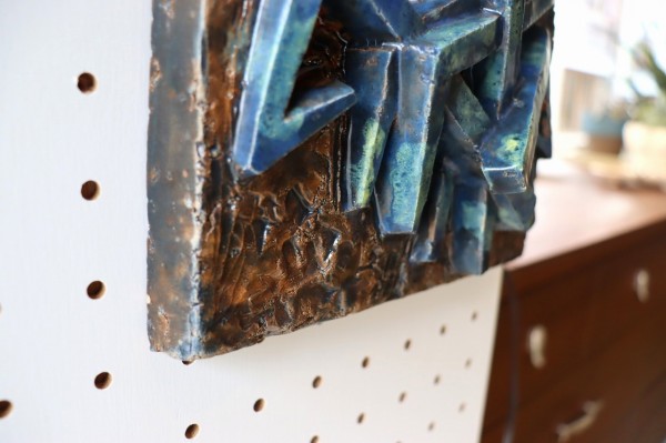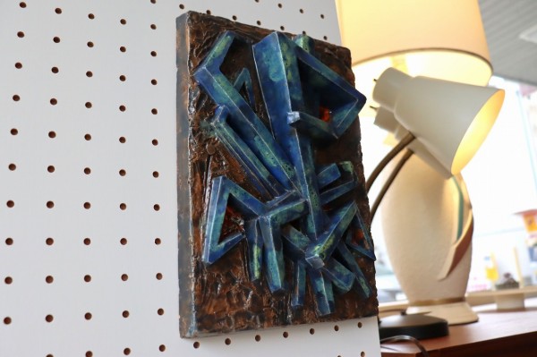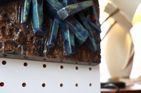 ポタリーレリーフ/アート。デンマーク出身のオルステッド・ヨハンセンによって作られた陶器でできた壁掛けのプレートです。