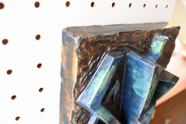 直線的かつシャープなつくりでエッジが強調された鋭さが魅力的。釉薬の混じり方やグラデーションが美しく神秘的です。