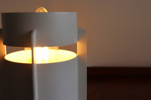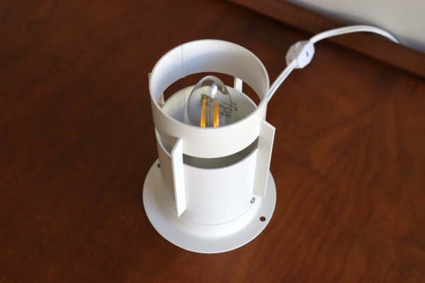 筒型のすっきりとしたデザイン。スリットの隙間から照明の灯りが洩れる仕組みなので、演出効果も高く、インテリアに取り入れやすそうです。