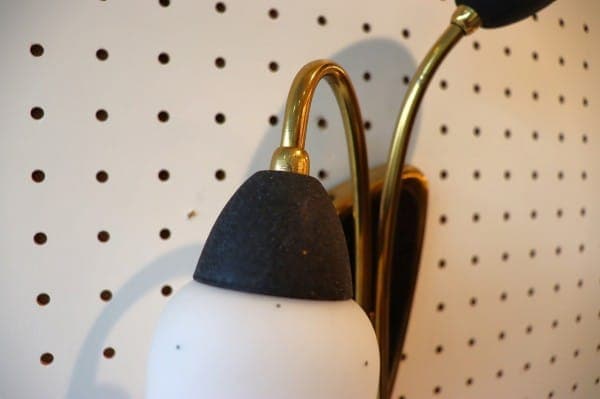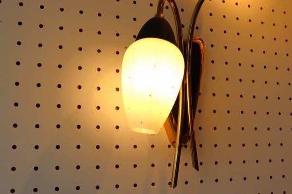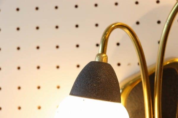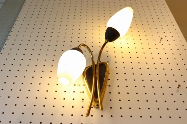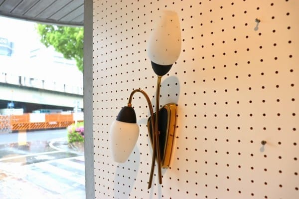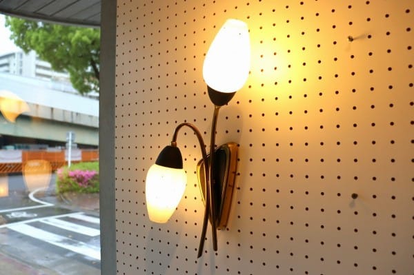 花のつぼみのような2灯のガラスシェードが、上品なかわいさのこちら。真鍮のゴールドが華やかさも加えていて壁面を彩ってくれます。