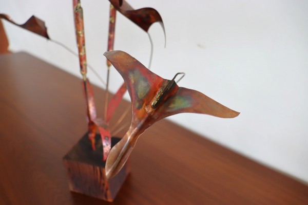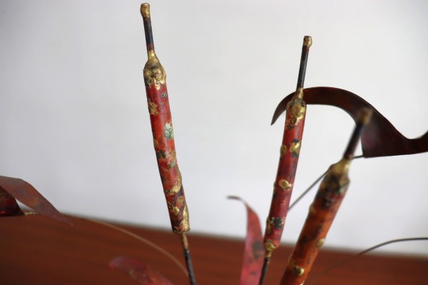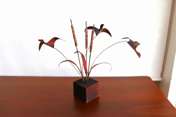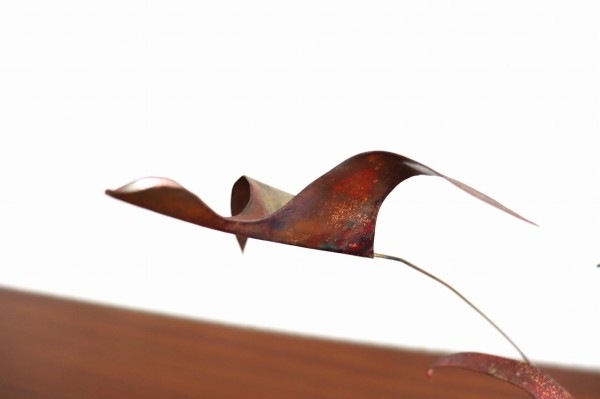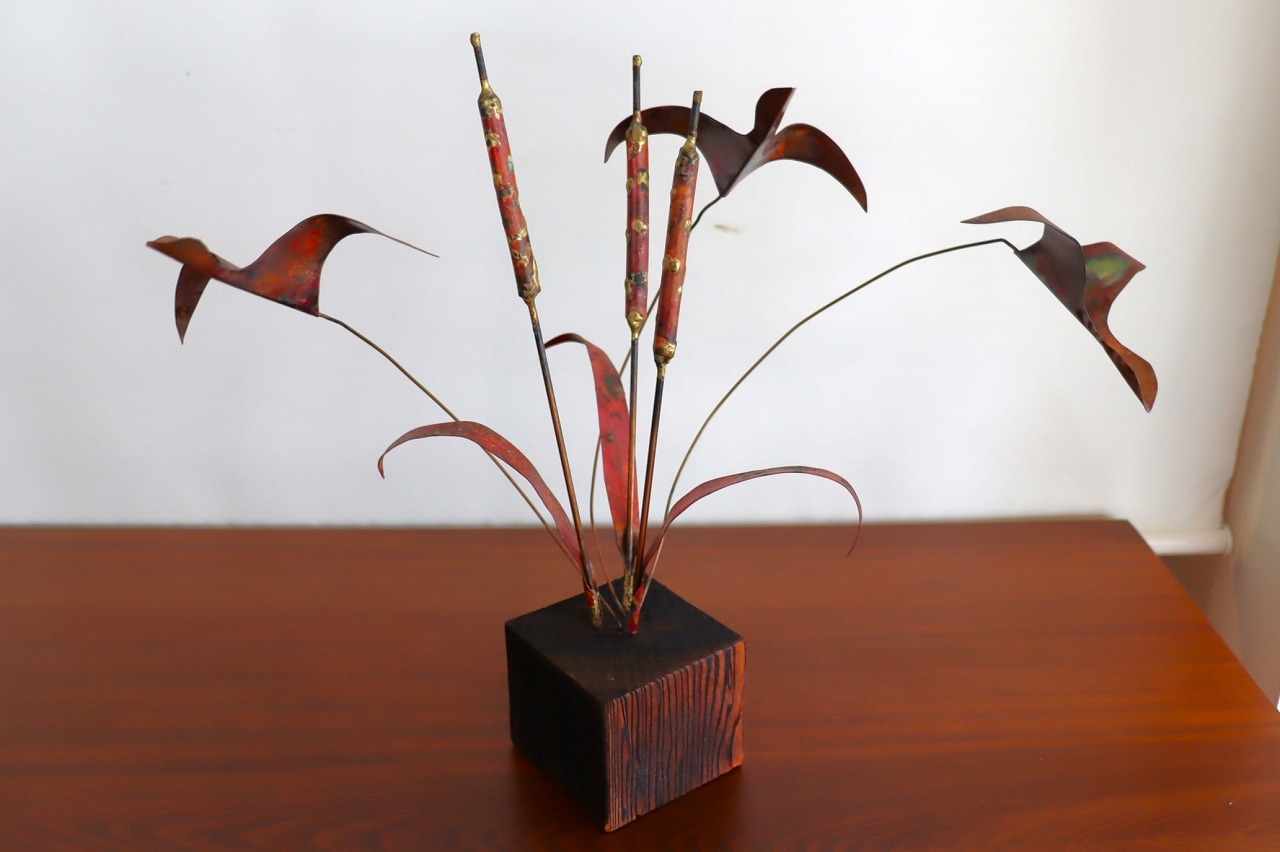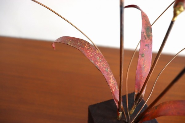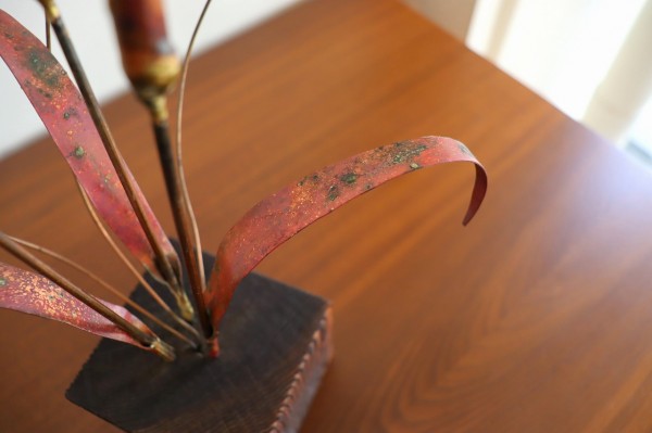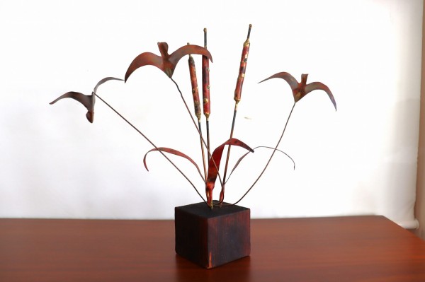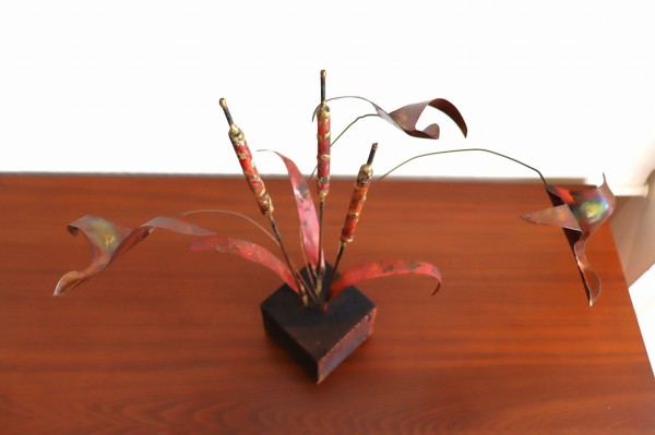 スカルプチャー。金属を加工して作られたオブジェのようなもので、ミッドセンチュリーインテリアには、このように金属で自然物を表現したものが数多く見られます。