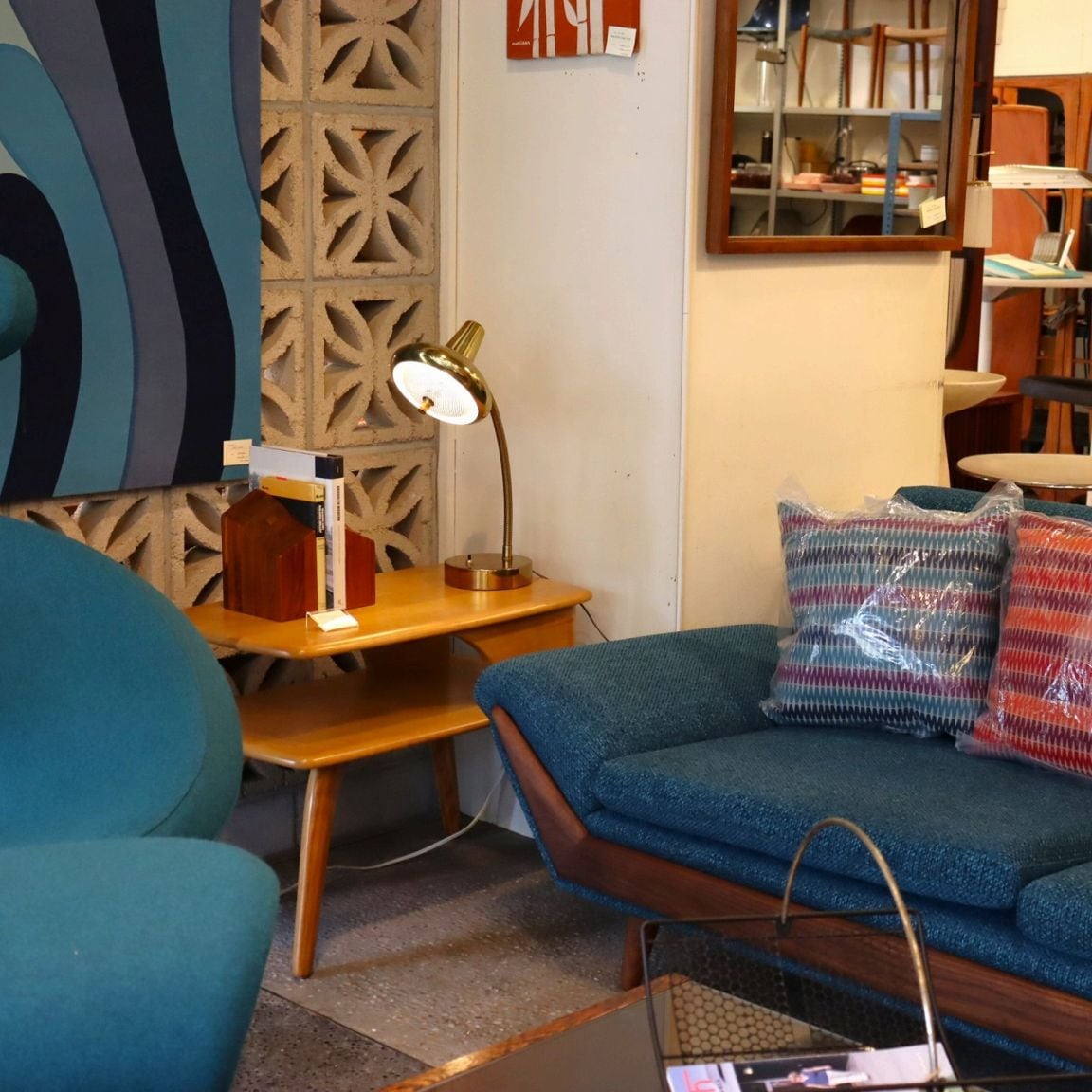 アメリカの50年代らしい、ツヤのあるゴールドの丸みのあるシェードで可愛らしさと華やかさを併せ持ったお品です。