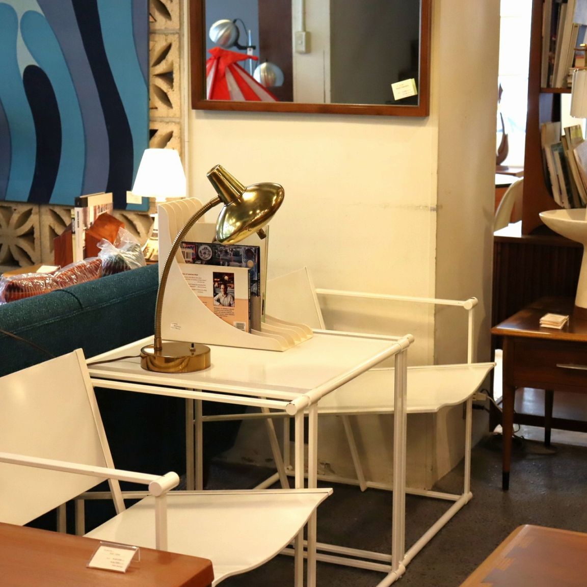 自在に曲げることができるネックはデスクランプとしてとても便利。ぐっと曲げて手元を照らしたり、間接照明のように壁にむけたりと使い勝手やシーンに合わせて好みの位置に調整できます。古臭くなりすぎず、どんな部屋にもすっと馴染んでくれそうです。