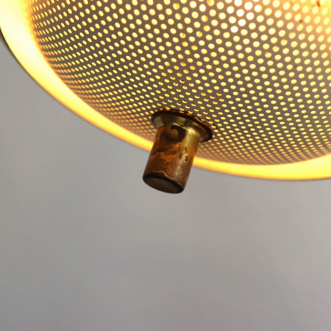 ランプ下面には全面にパンチングが施された、電球に挟み込むようなシェードカバーが付いています。点灯すると電球の灯りで光が満たされ、明るく華やかな雰囲気に。明るすぎないランプなので、演出効果も高いです。
