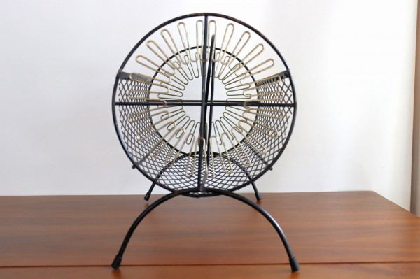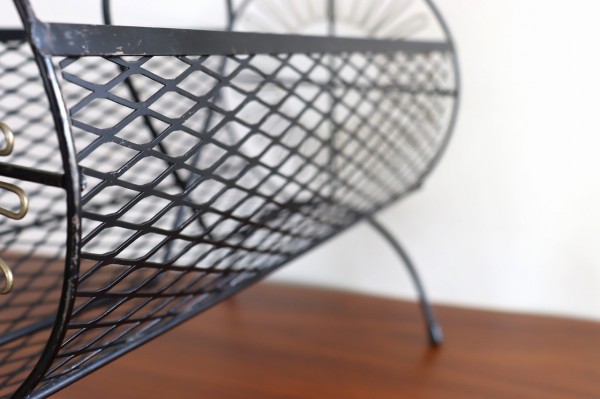 筒型の本体と、アーチ状の脚と取っ手が付いたデザイン。ワイヤーで構成された抜け感のある佇まいで、こなれた空気感を演出してくれます。雑誌などモノを置く量によって見え方もガラッと変わってくると思います。