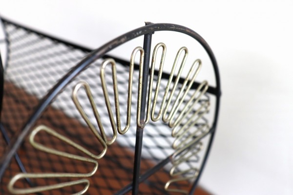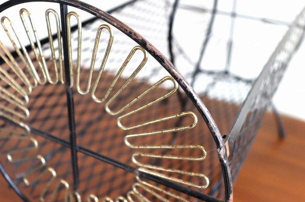マガジンラック。ワイヤーワークが個性的なデザインのマガジンラックです。