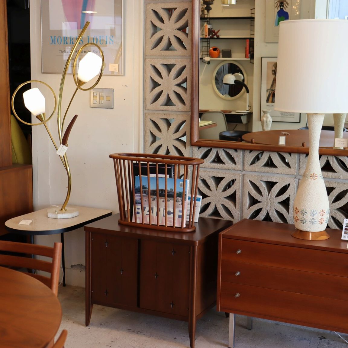 アーサー・ウマノフデザインのマガジンラック。ウマノフのデザインはアイアンワークやスポーク状のウッドを使用した抜けのあるインテリアが多くデザインされています。