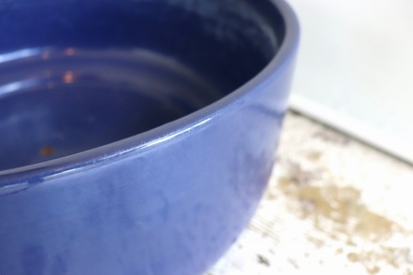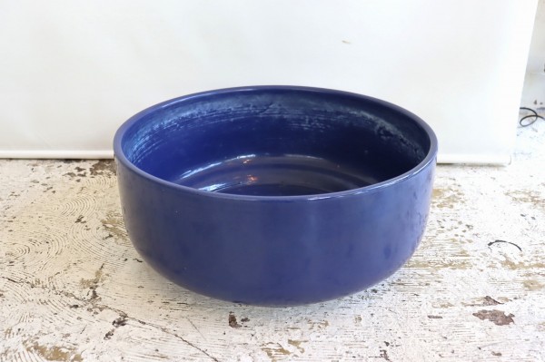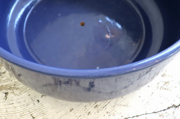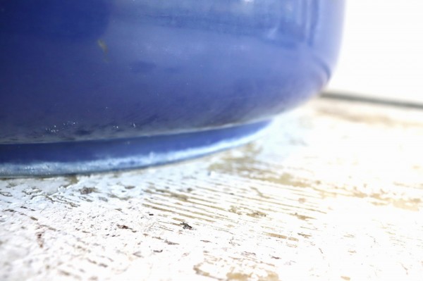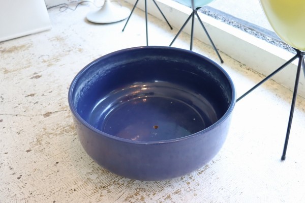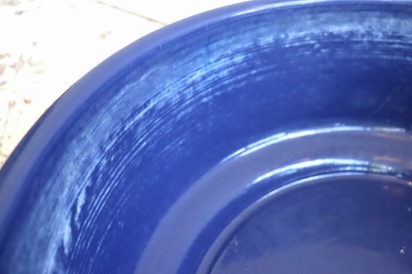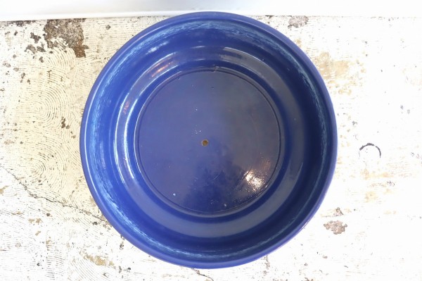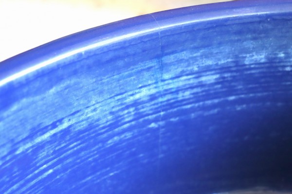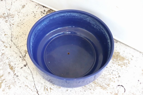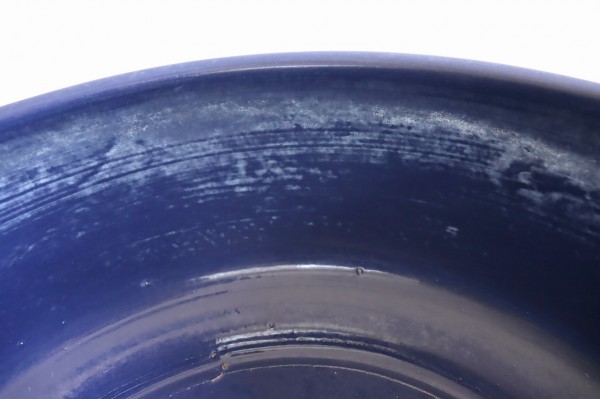 ネイビーとパープルを合わせたような色合いは奥行きのある落ち着いた雰囲気。内側のカルキ跡は一筆書きで書いたような味わいのある模様の様です。