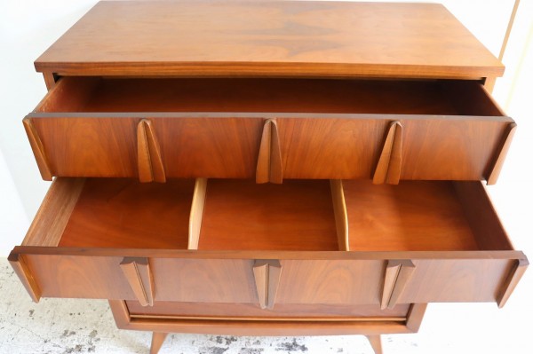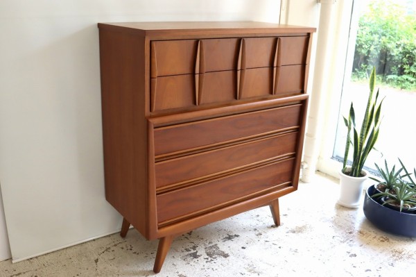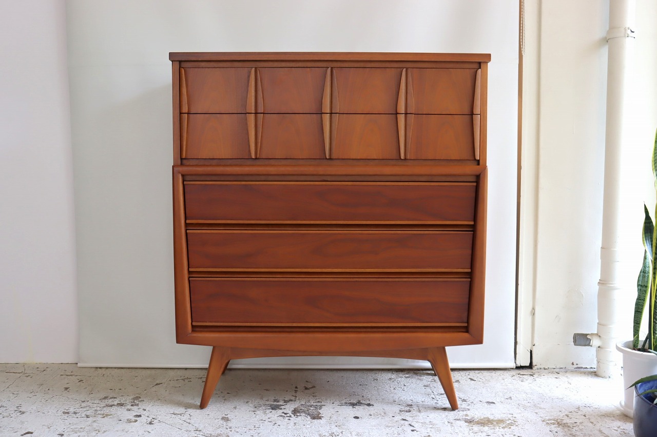 ユナイテッド社製のチェスト。ハノ字に開いた脚が特徴的なデザインのアメリカ60年代のチェストです。