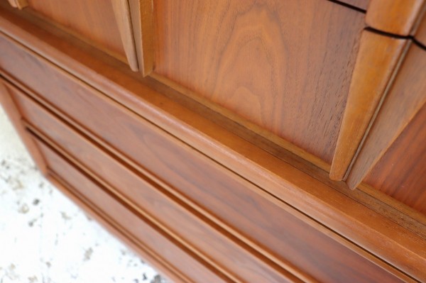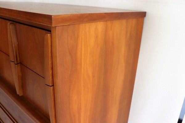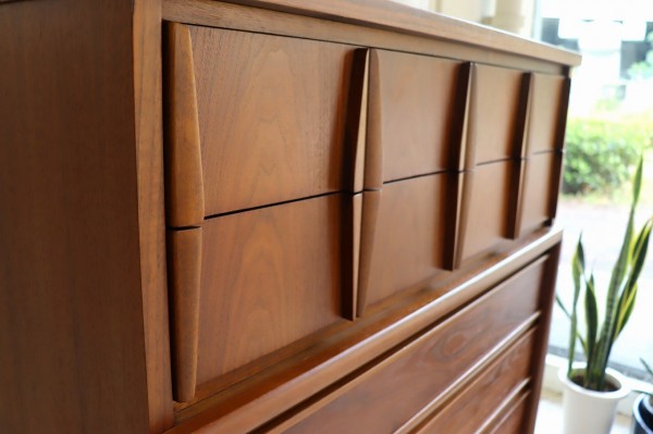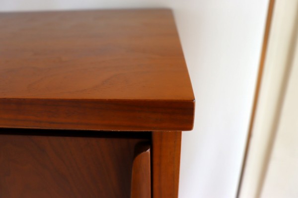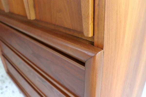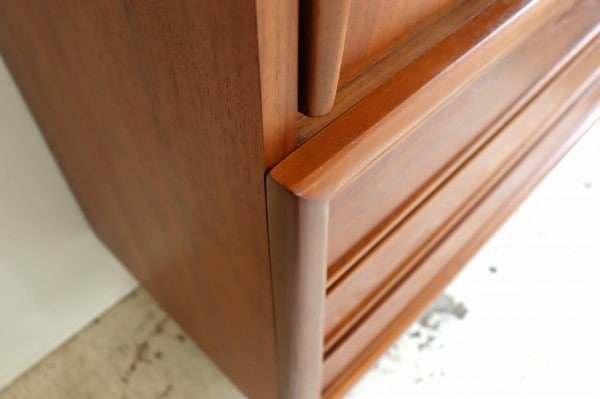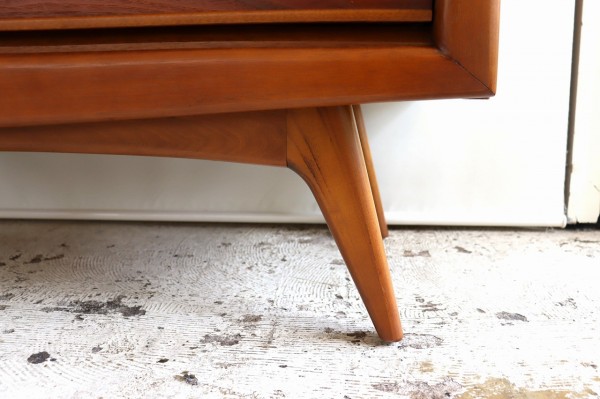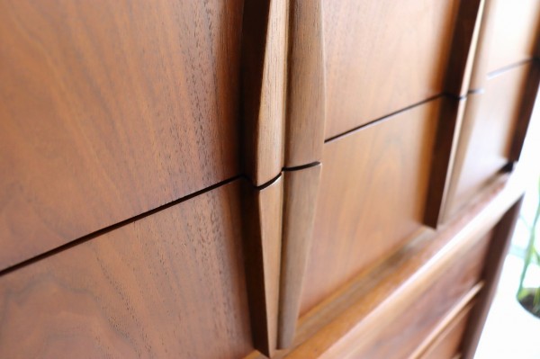 取手の彫り込みや縁はアールで柔らかな曲線のデザイン。柔らかく優しい雰囲気とどっしりとした風格がアメリカンミットセンチュリー感たっぷりです。