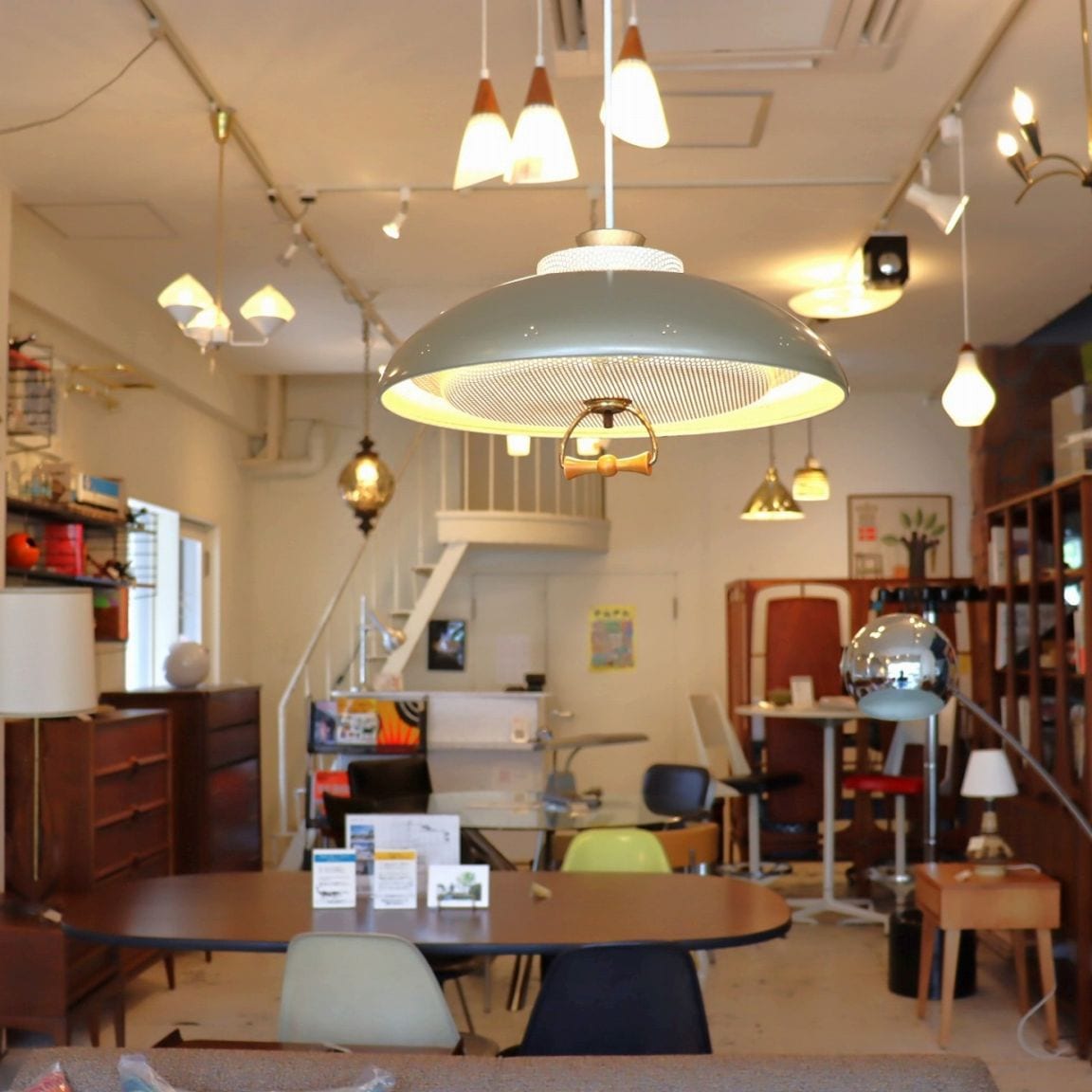 UFOペンダントランプ。その名の通り、UFOをモチーフにしたペンダントランプ。アトミックエイジでもある50-70年代にはこういったUFOモチーフのランプが数多く作られました。