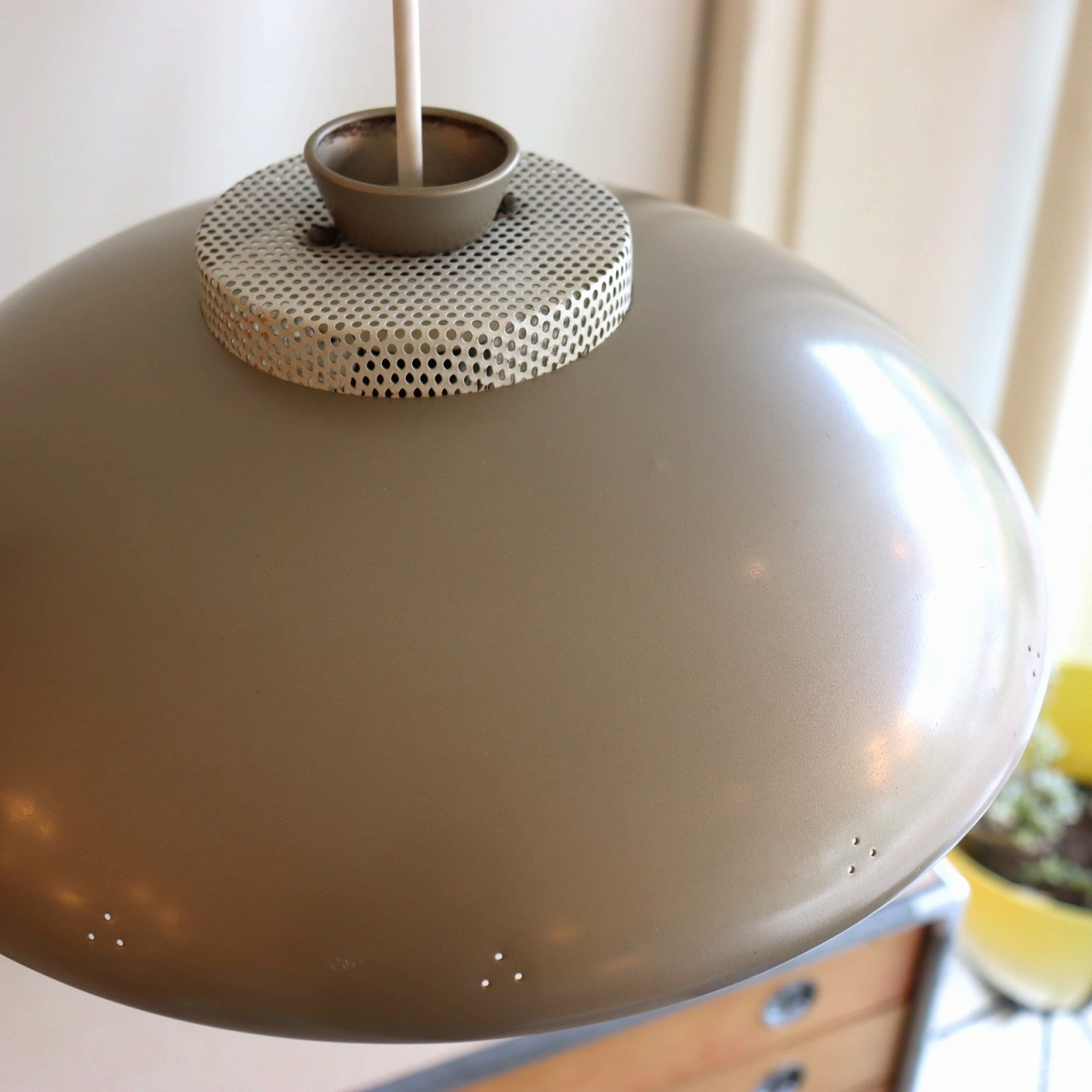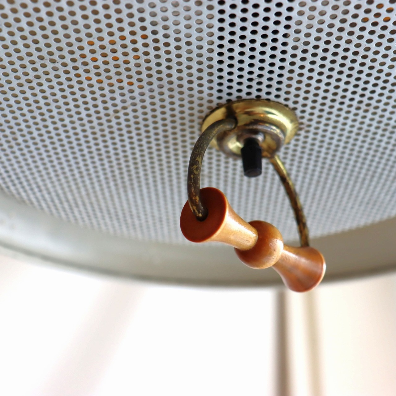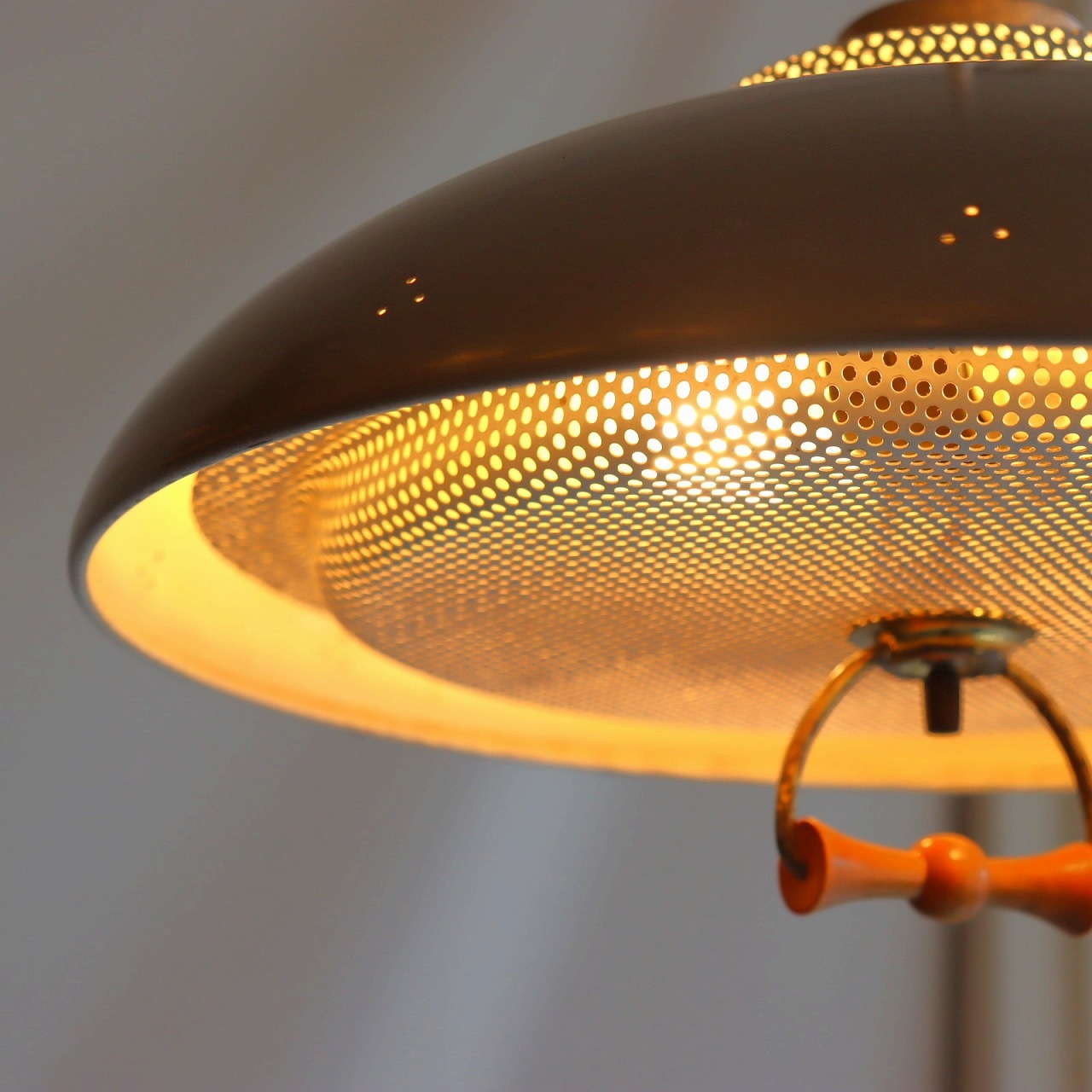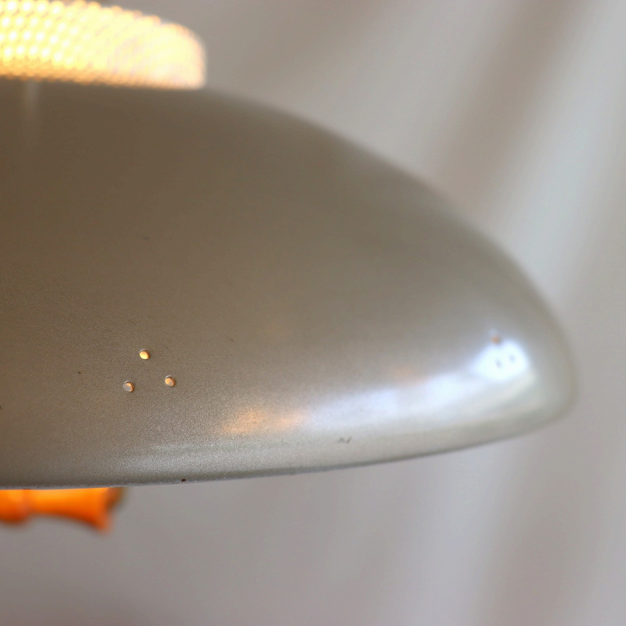 シェードトップにもカップがついていて、こちらにもパンチング穴があいています。熱抜きの穴から光が漏れるので、その光がカップ側面のパンチングからふわっと光る効果も。