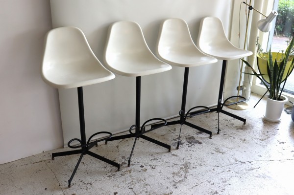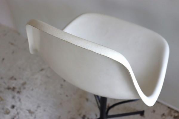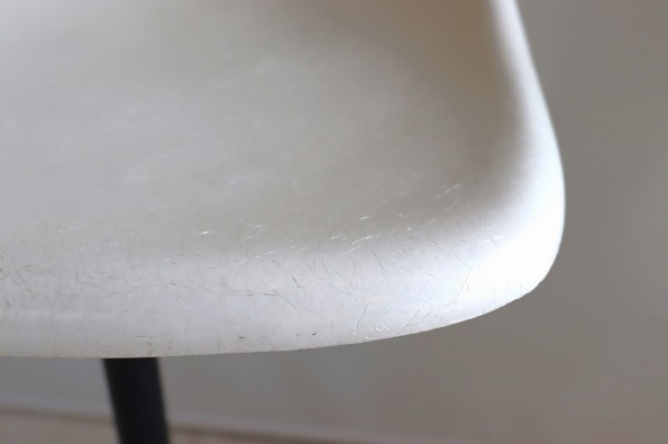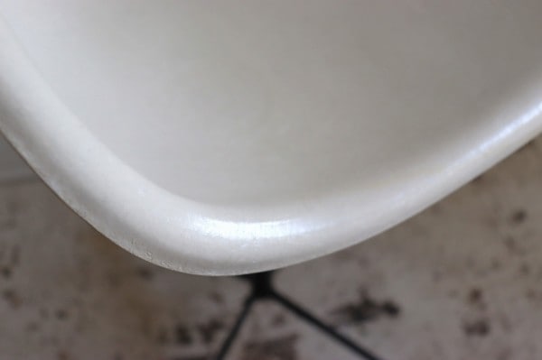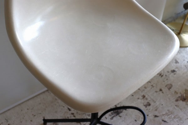 座面はFRP製でファイバーグラスの輝きが感じられます。体にフィットする曲線は座り心地もよく、ヴィンテージを感じる配色と擦れ具合も良いですね。
