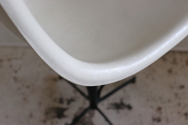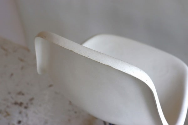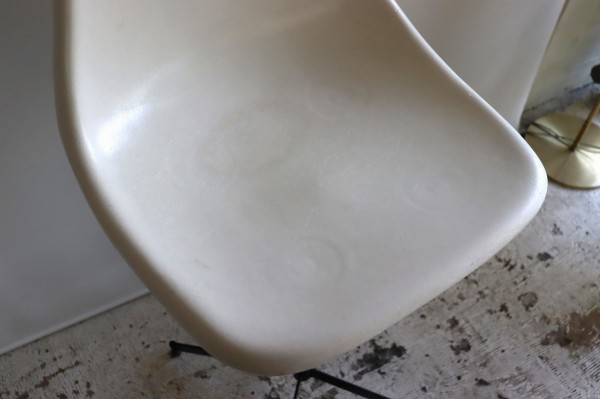 座面はFRP製でファイバーグラスの輝きが感じられます。体にフィットする曲線は座り心地もよく、ヴィンテージを感じる配色と擦れ具合も良いですね。