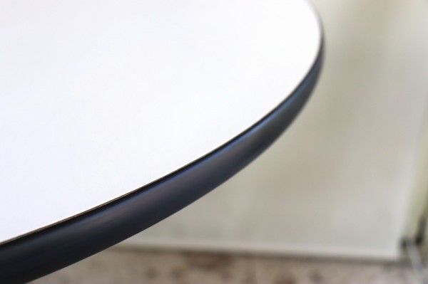 ハーマンミラー社製ラウンドテーブル。天板はホワイトメラミン、ベースはアルミナムベースのキャスター付きです。