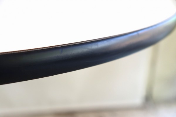 天板にいくつかキズと縁のゴムにも多少のキズはあるものの、大きく目立ったダメージはありません。キャスターの動きもスムーズです。