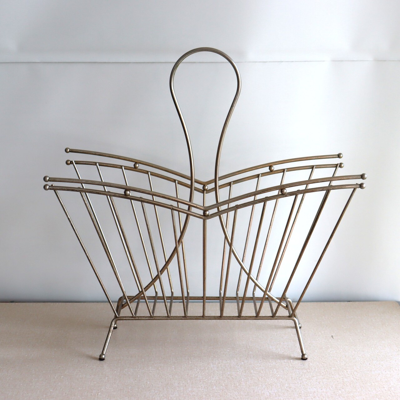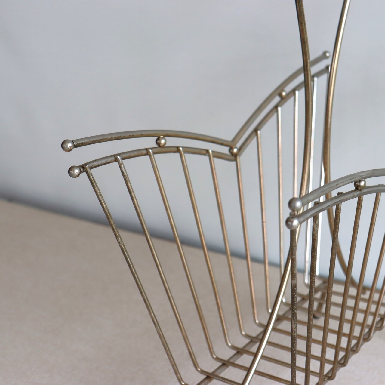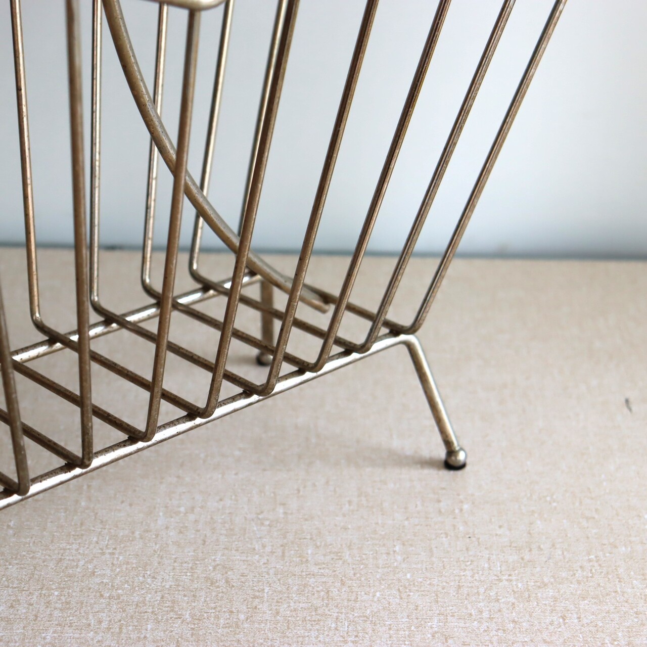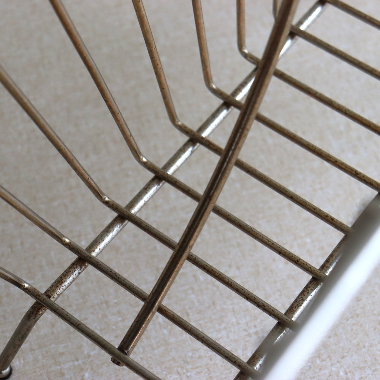 ゴールドの細いワイヤーで構成されたこちら。丸い脚先や滑らかな曲線はミッドセンチュリーのデザインらしく、抜け感抜群で実用とインテリアどちらの目線でも魅力的です。