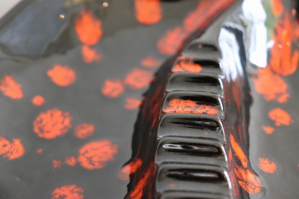 こちらはブラックのベースに鮮やかなレッドの色合い。フォルムの独特さはもちろん、火花のように跳ねる模様は動きが感じられ、かなりインパクトのあるアッシュトレーですね。
