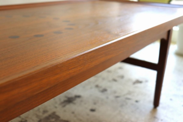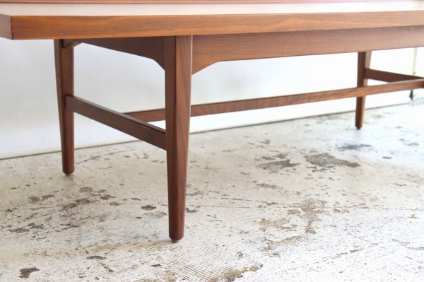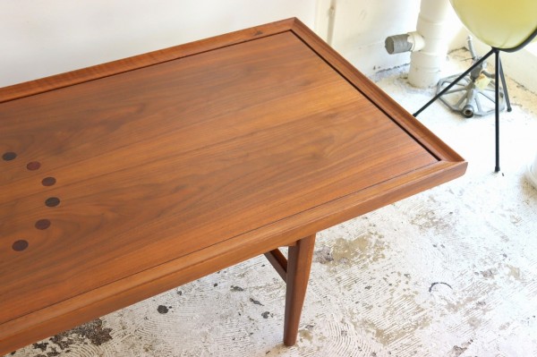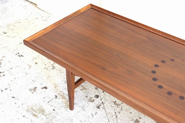 ウォールナット材で作られた横長のコーヒーテーブル。キップ・スチュワートのハイセンスなデザインとのコラボレーションは現代でも色あせることのないかっこよさを感じさせます。